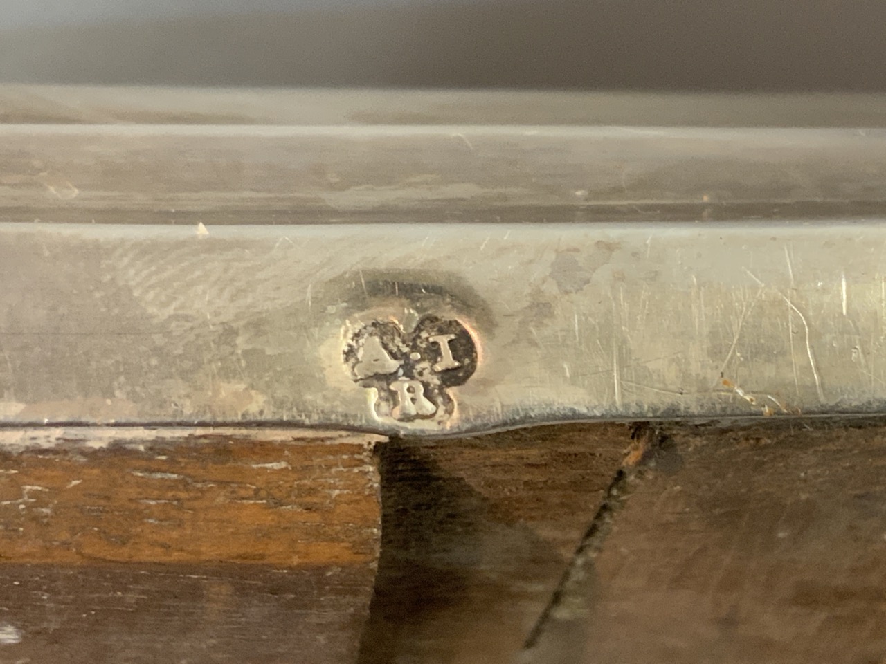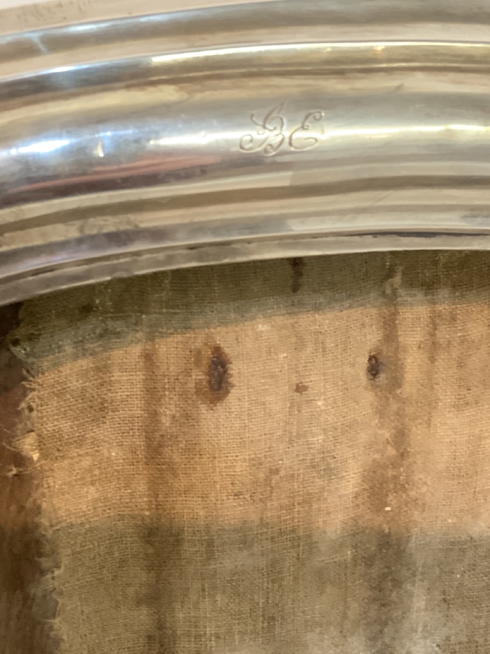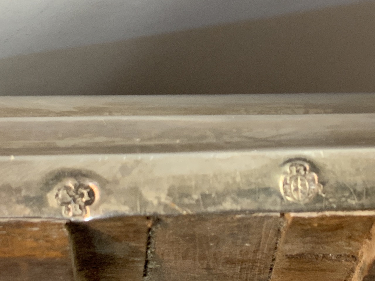 18th c. Austrian silver mirror or icon frame. Austrian markings 13 loth dated 1729. Monogrammed BE.