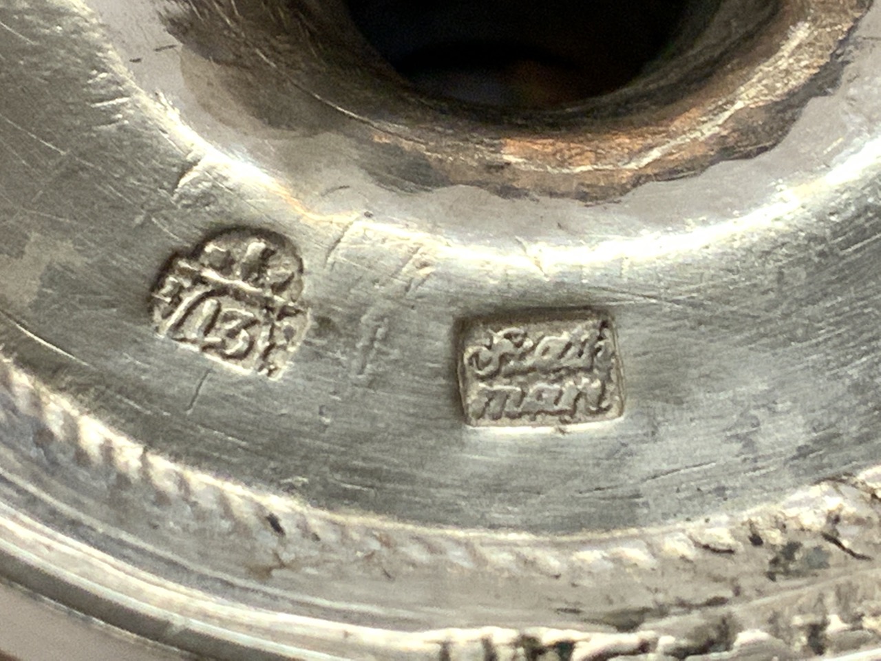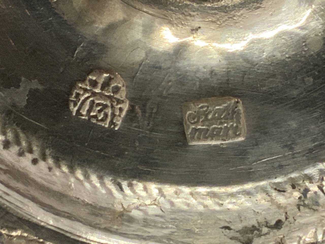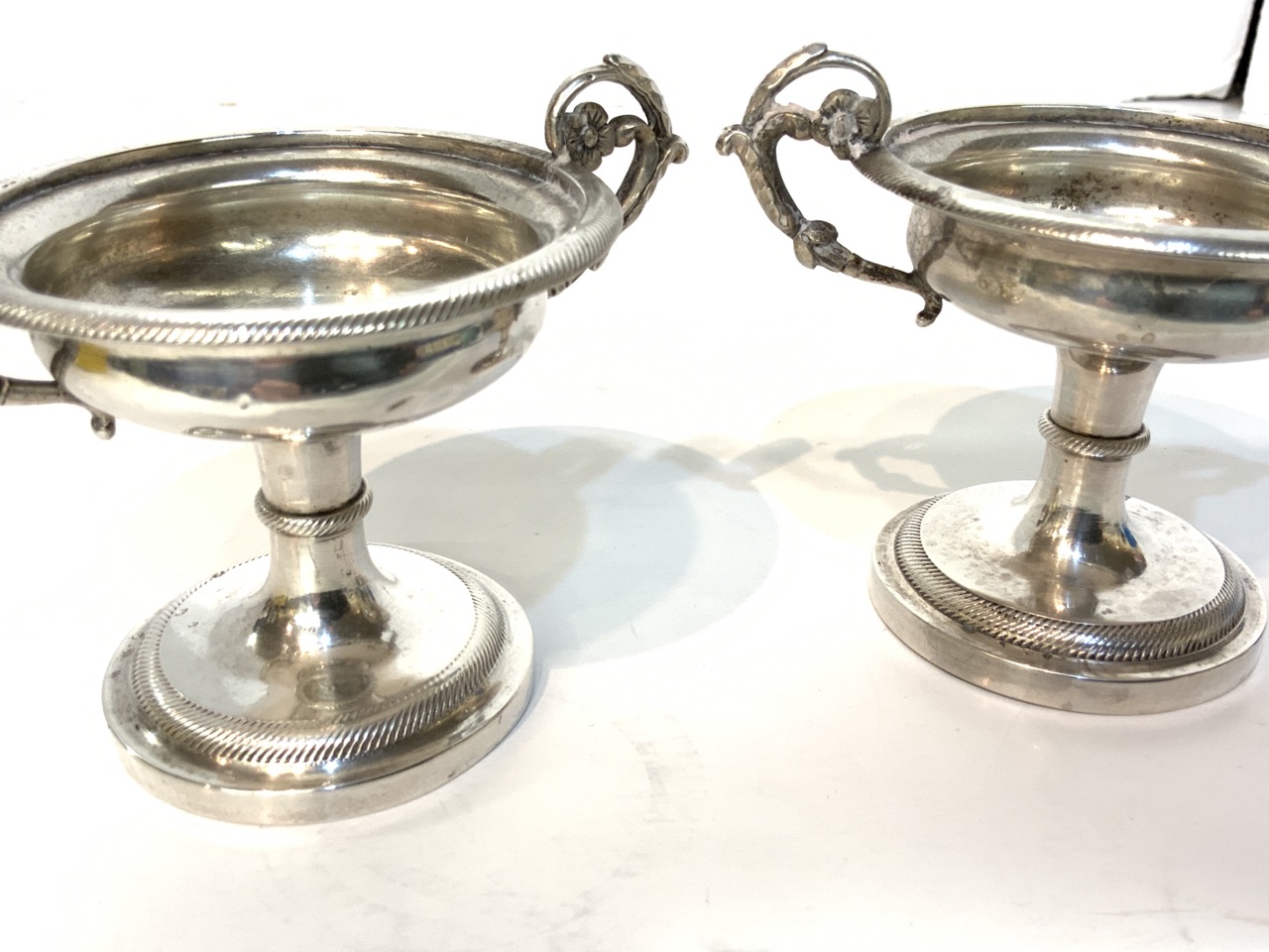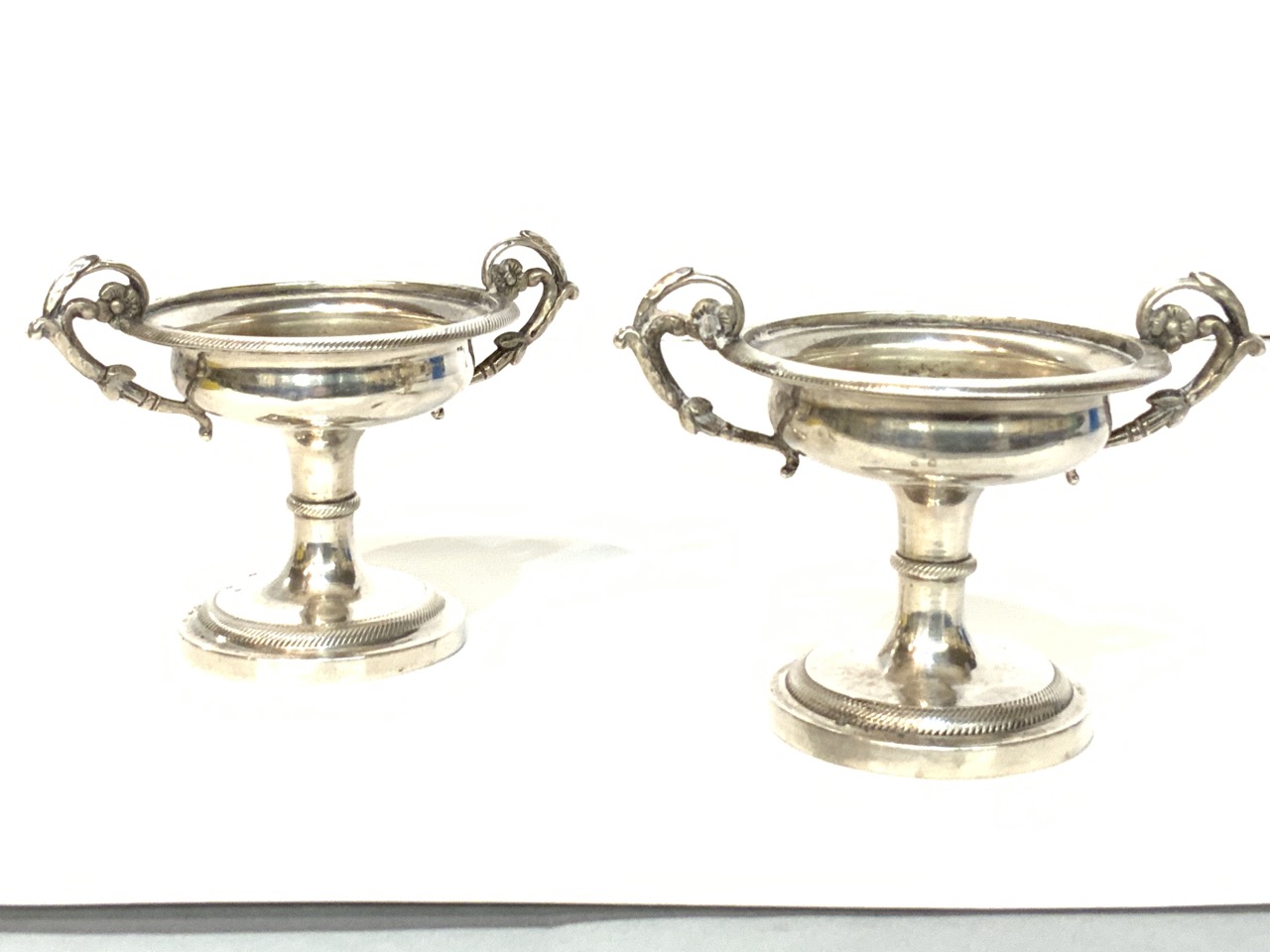 Austro-Hungarian silver salts. 18th century. Castle 13 mark and maker's mark illegible. Monogrammed BE
