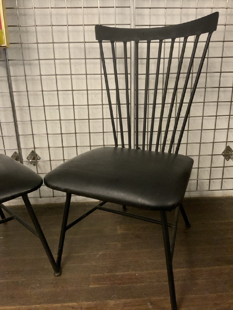 A Pair, Wrought Iron Mid Century Modern Spindle Back Chairs. Dimensions: 39 1/2” x 17” x 18”