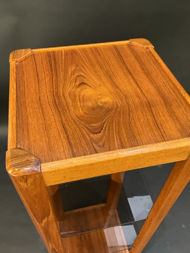 Uldum Danish Modern Plant Stand with Two Smoke Glass Shelves.