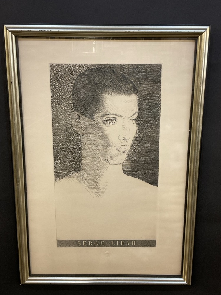 Serge Lifar Ballet Dancer Etching w/Embossed Louvre Stamp.