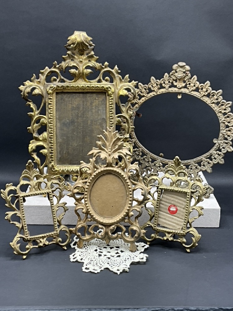 Five (5) Antique Victorian Easel Back Picture Frames.