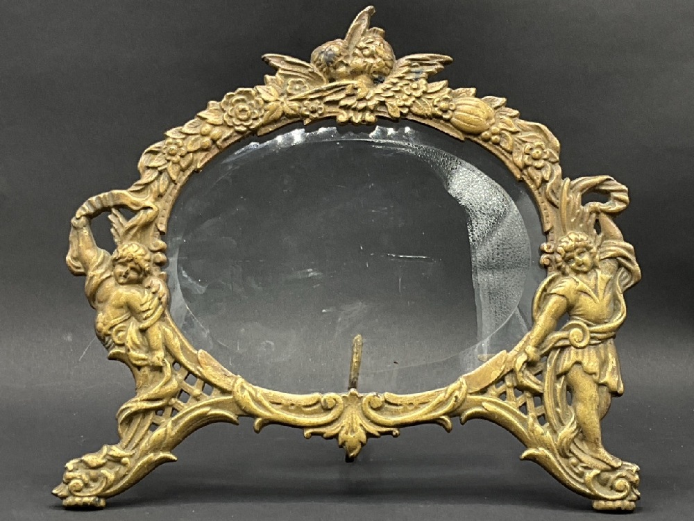 Signed NB & IW Easel Back Antique Brass Frame W/ Cherubs.