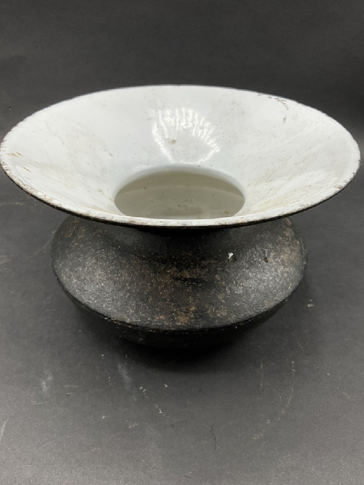 Two (2) Cast Iron Enameled Spittoons.