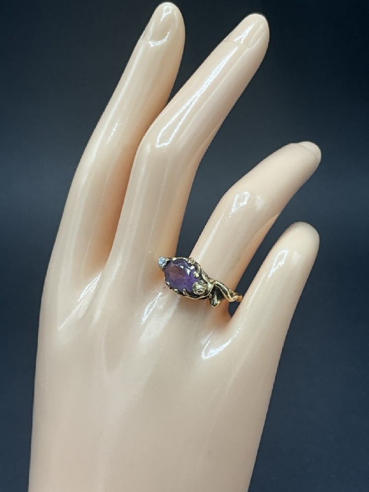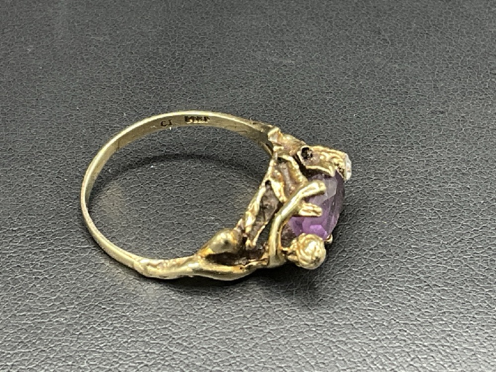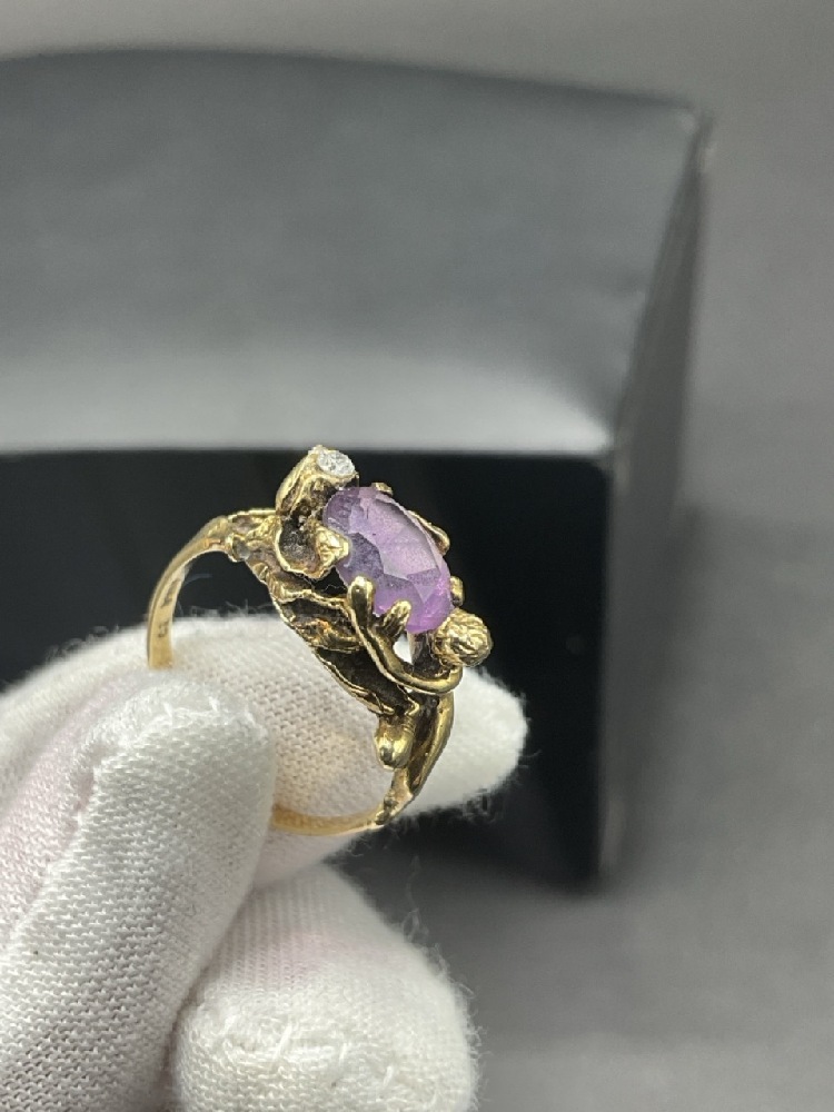 14K Yellow Gold Amethyst & Diamond w/Nude Ring.