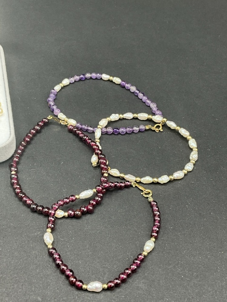 Four bracelets, necklace and bracelet: