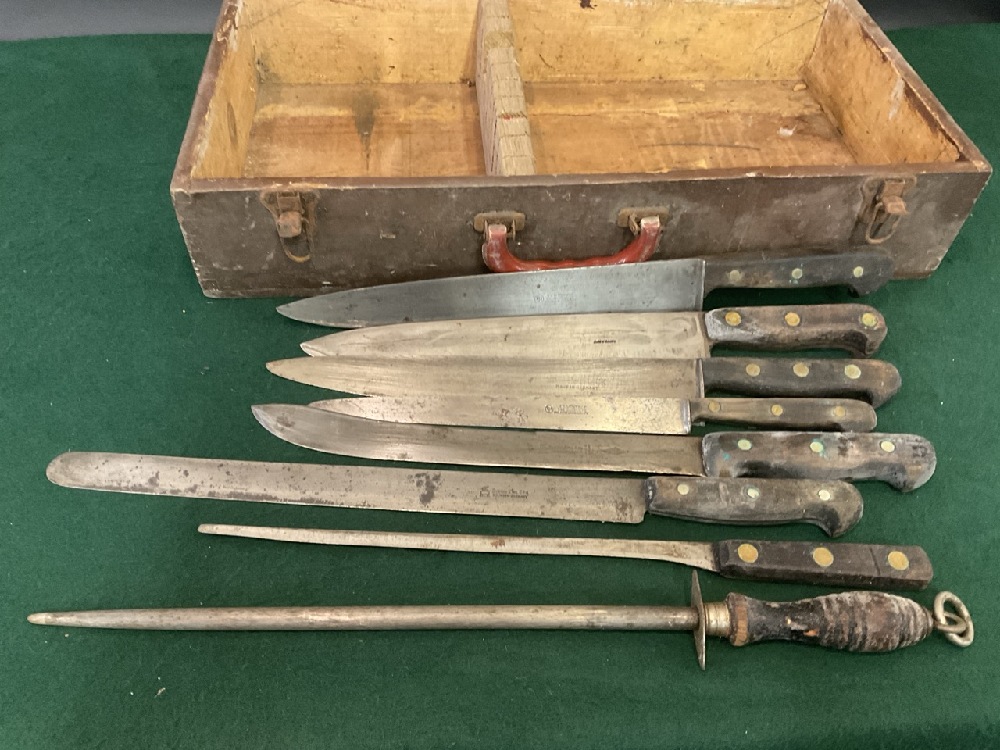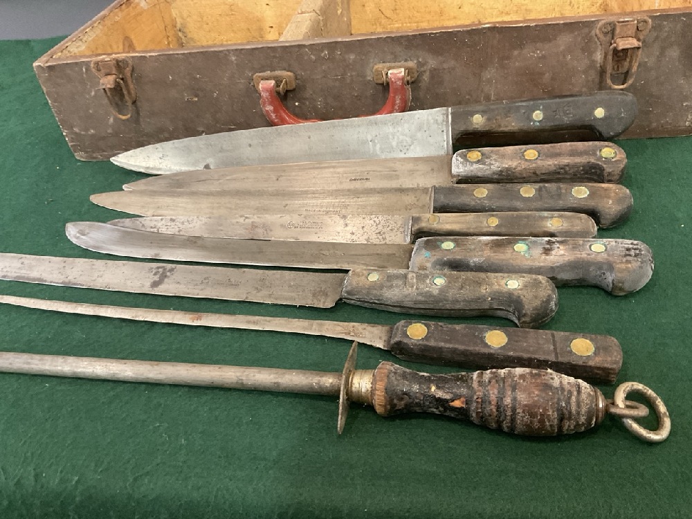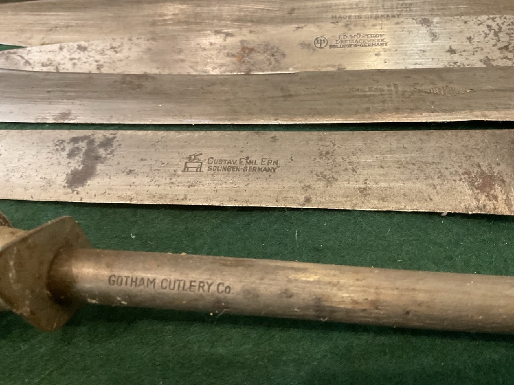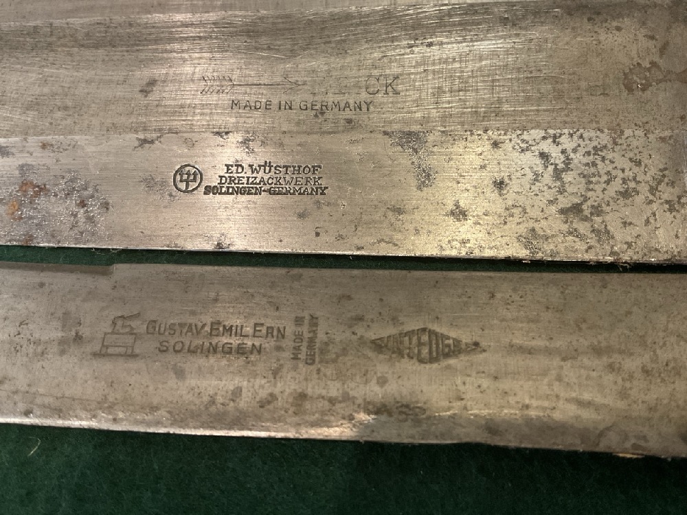 Attic Found Butcher Knives in Case. E.D. Wusthof, Gustay Emilern Solingen, Gotham Cutlery Co.