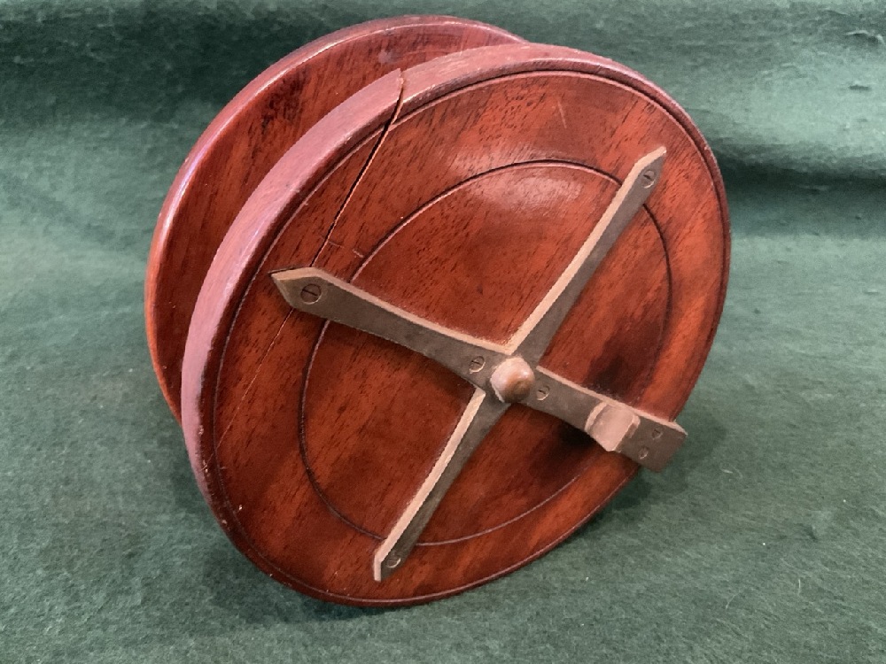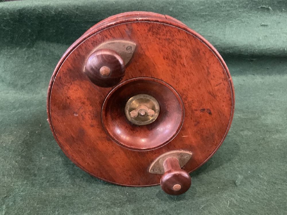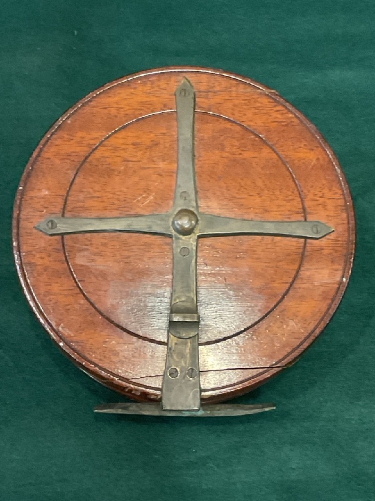 LG. Antique Walnut & Brass Fishing Reel.