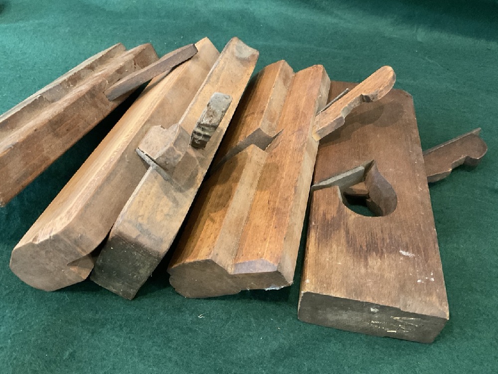 Five (5) Antique Wood Shaving Planes. Ohio Tool Co., J.W Park, Theodore Lane.