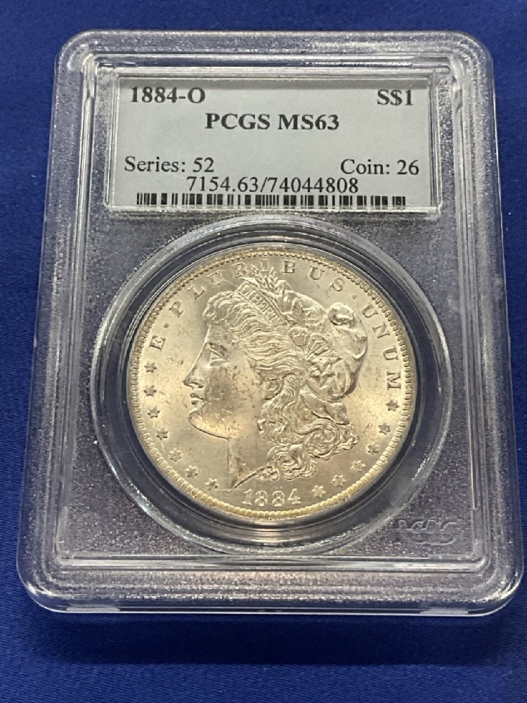 PCGS 1884-O MS63 Morgan Silver Dollar.
