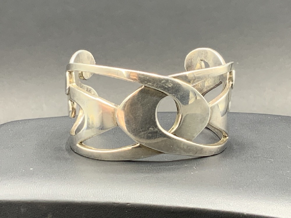 Sterling Silver Modernist Cuff Bracelet Signed WM.