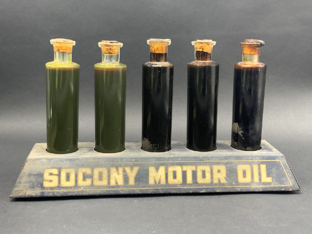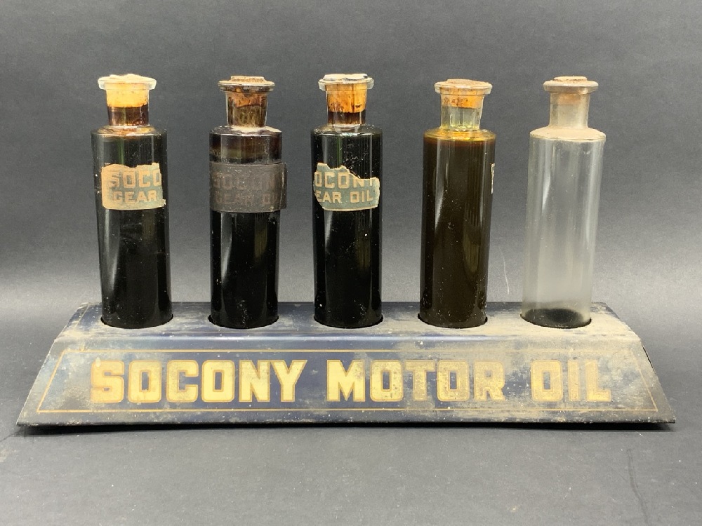RARE Socony Motor Oil Store Enameled Display with Vials.