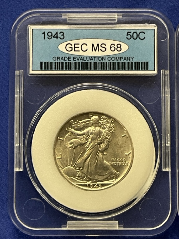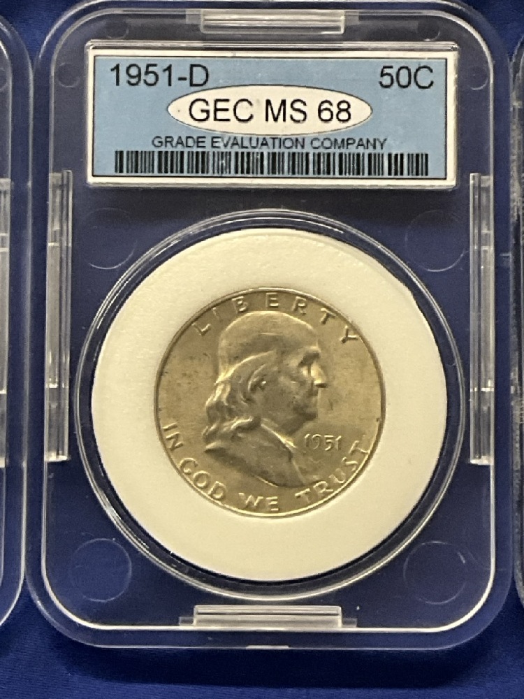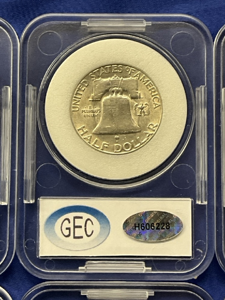 Uncirculated and Mint State Slabbed Silver Coin Lot. U.S. Franklin Halves, Walking Liberty, Roosevelt Dime and Washington Quarter.