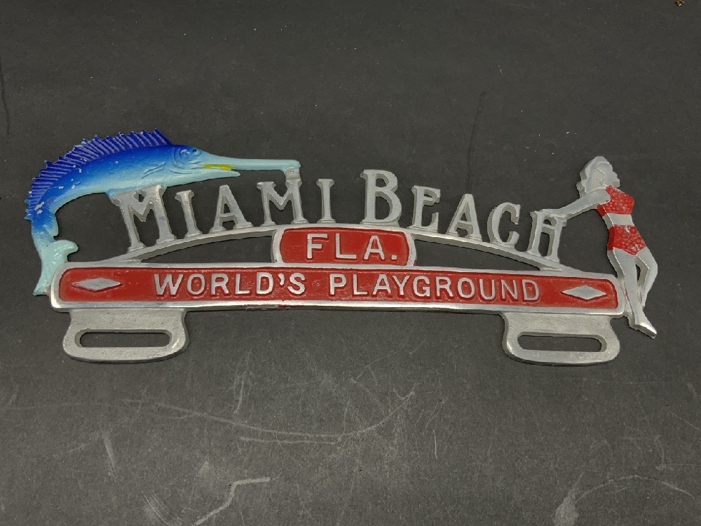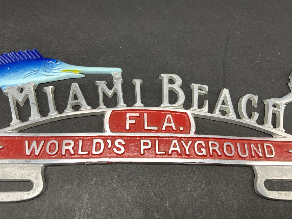 1950's Miami Beach “World’s Playground “ License Plate Frame Topper.