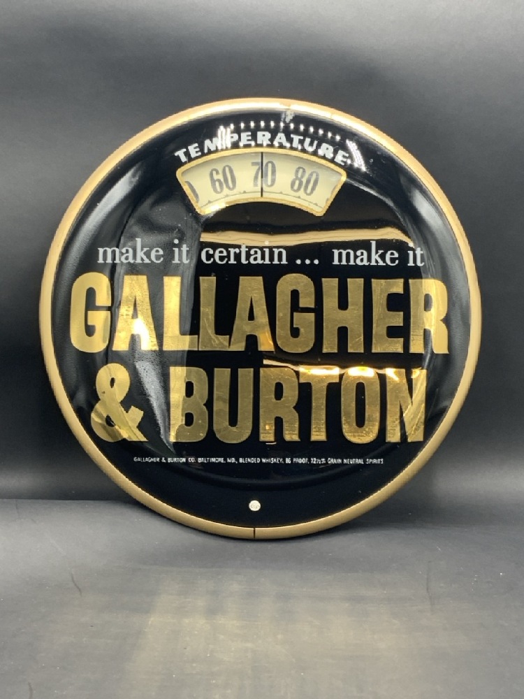 Vintage Gallagher & Burton Advertising Thermometer Sign