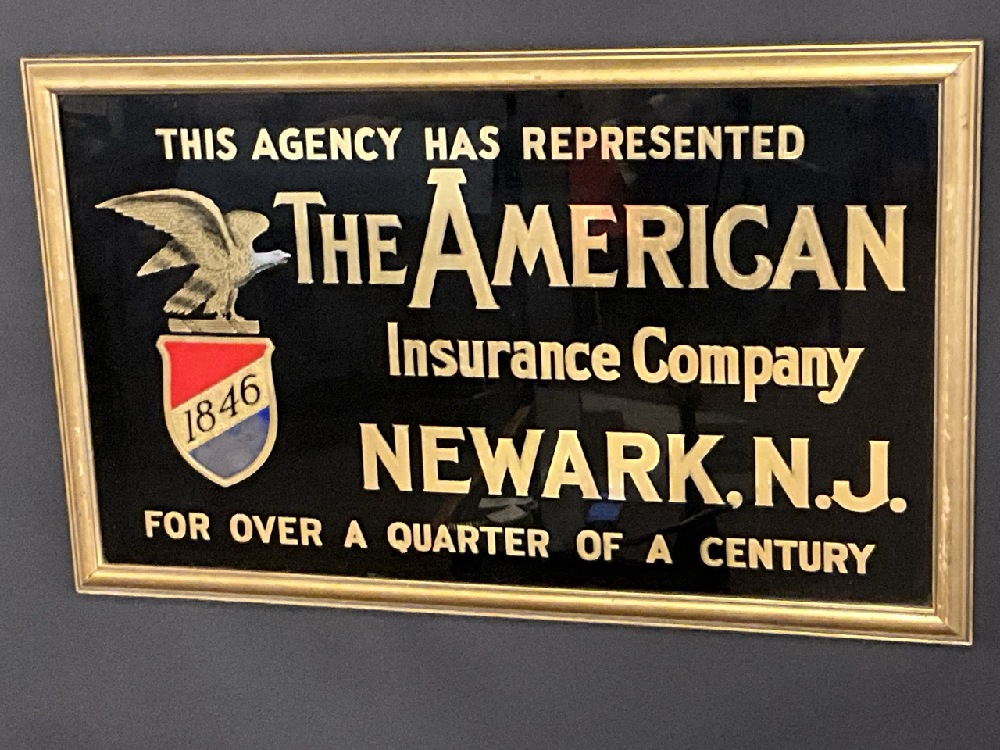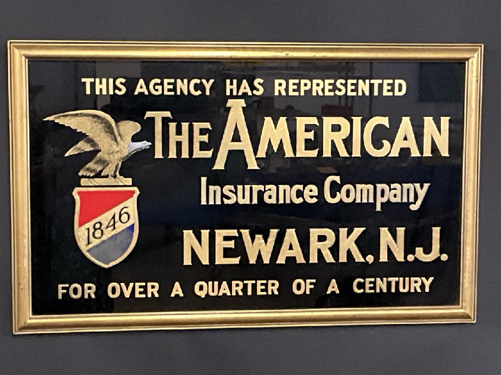 Antique American Insurance Company Newark, NJ Reverse Painted Glass Advertising Sign.