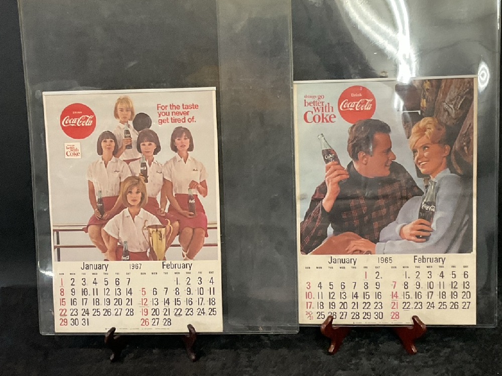 Two (2) 1960s Coca Cola Advertisement Calendars - 1966-67 & 1964-65.