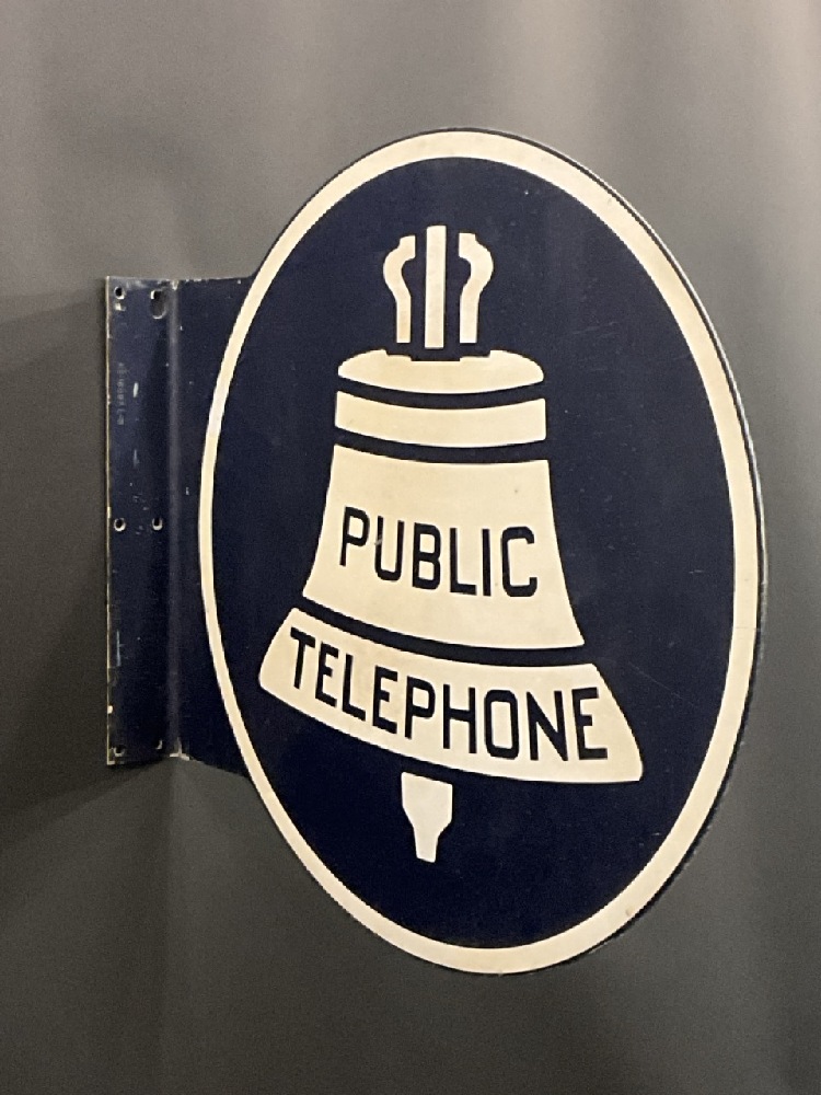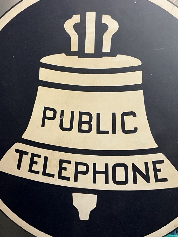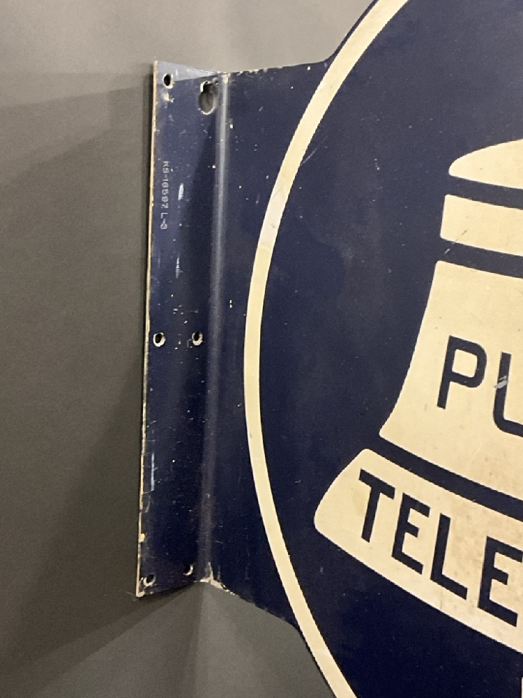 Large Vintage Bell System Public Telephone Flanged Double Sided Advertising Sign.
