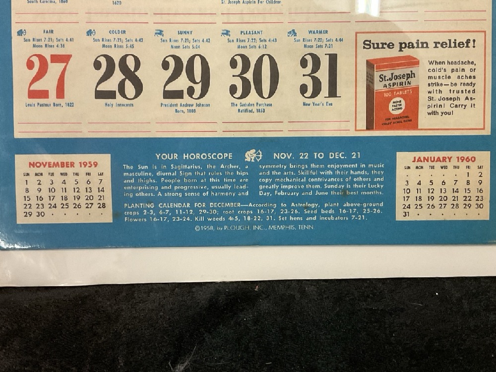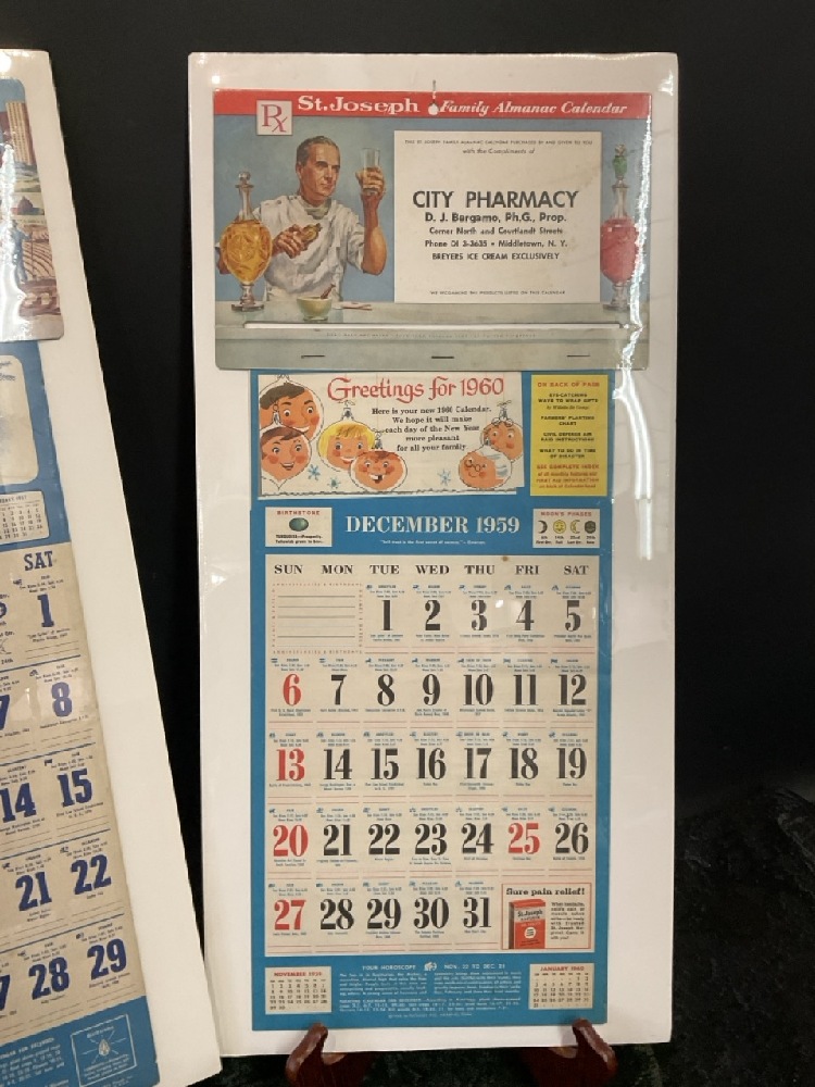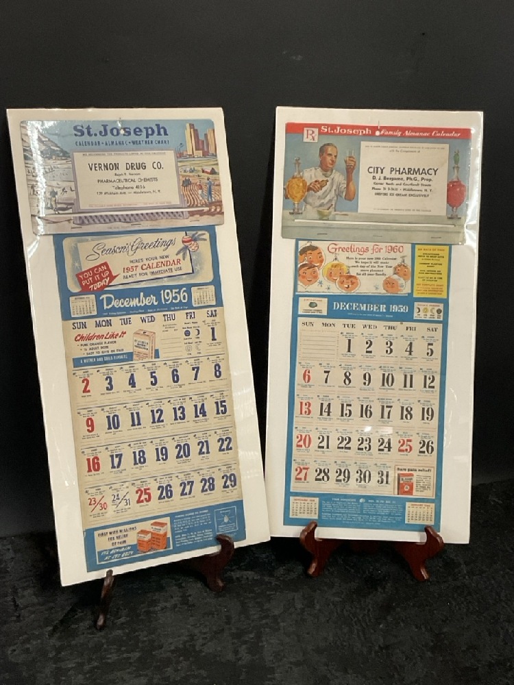 Vintage 1950s-60s Pharmacy Advertising Calendars - 1957 Vernon Drug, Co & 1960 City Pharmacy - Middletown, NY.