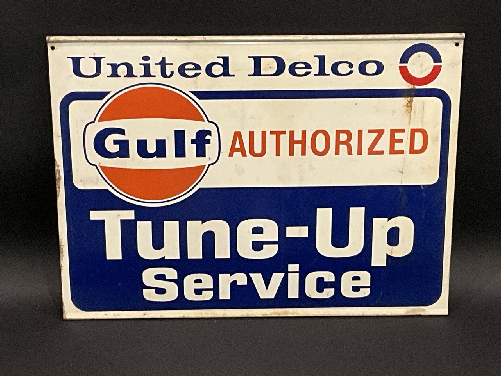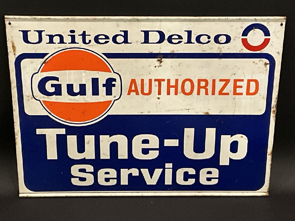 Rare Gulf United Delco Authorized Tune-Up Service Double Sided Metal Advertising Sign.