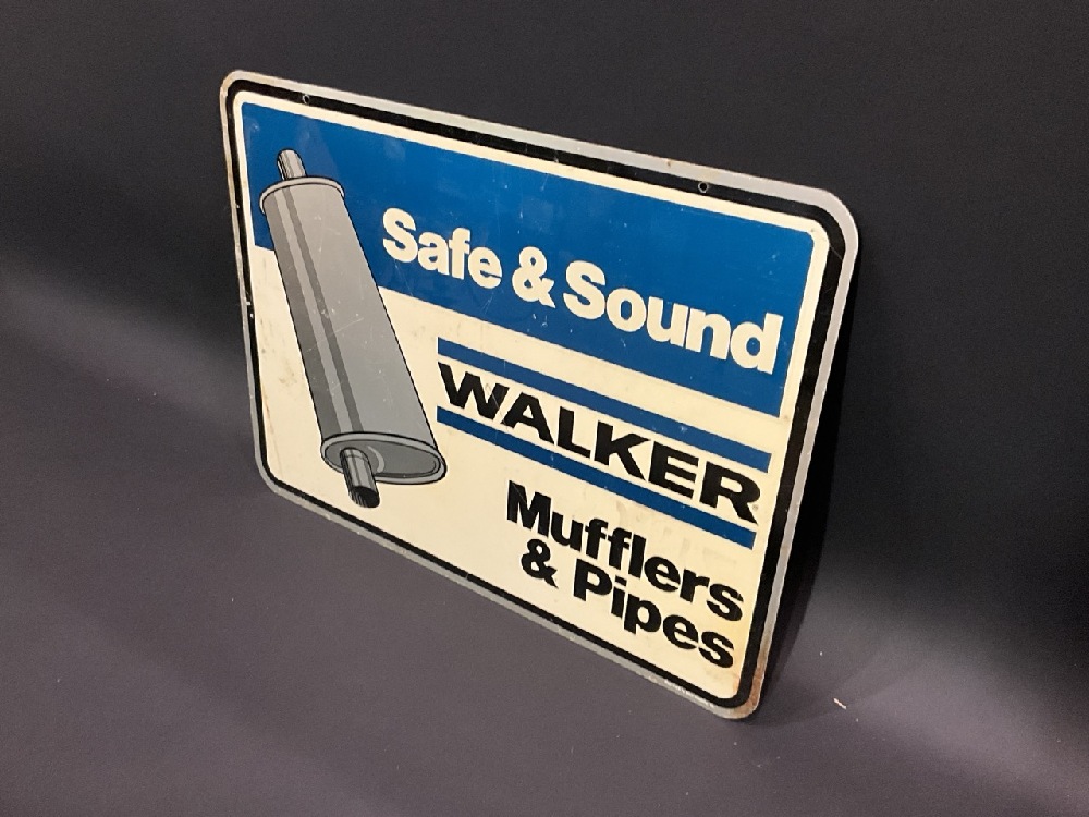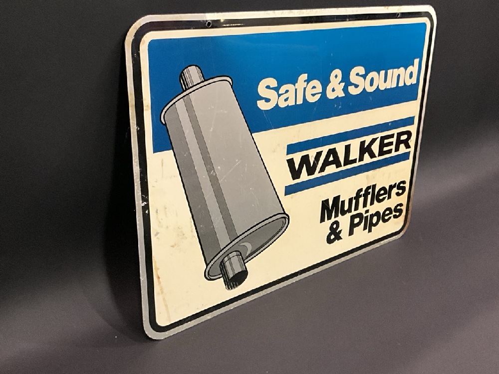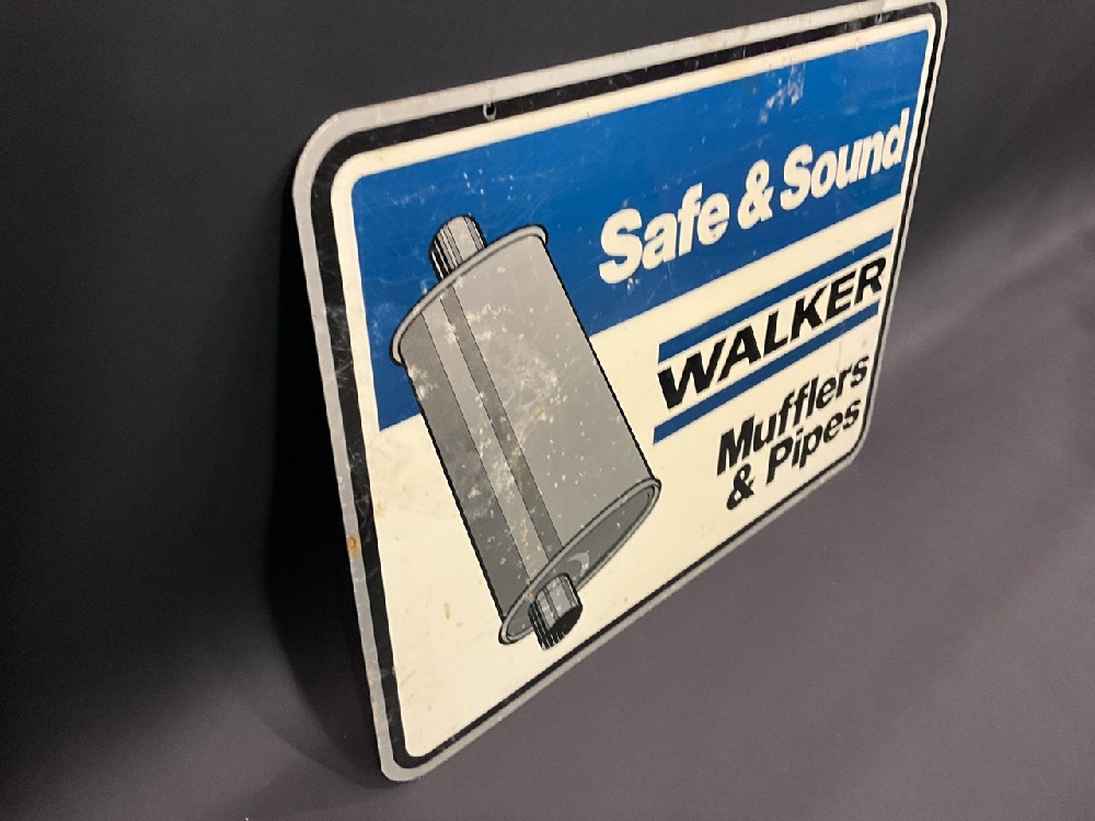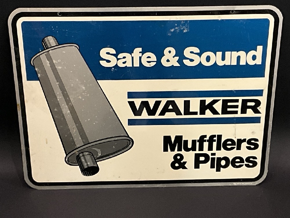 Vintage Walker Mufflers and Pipes Doubled Sided Metal Advertising Sign.
