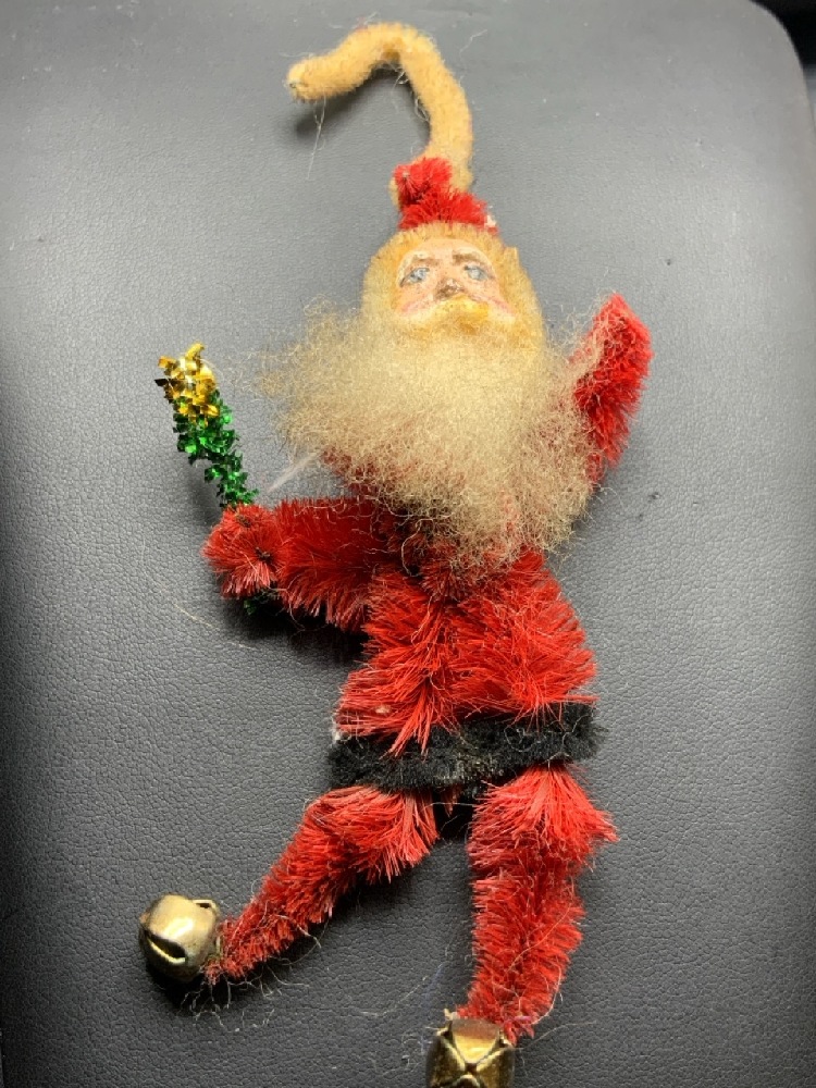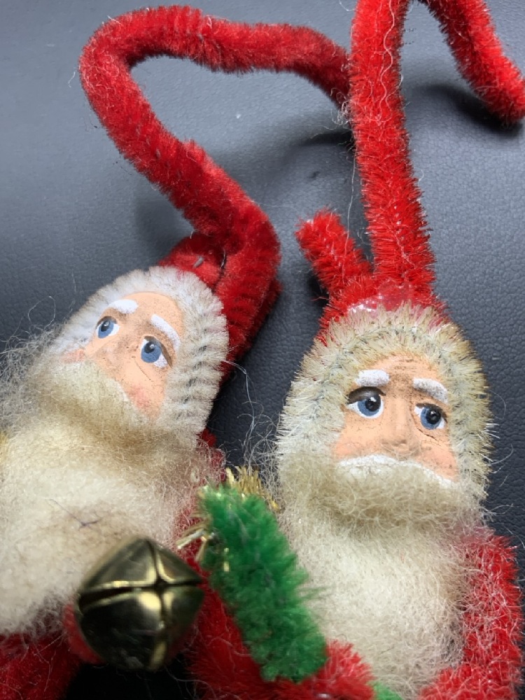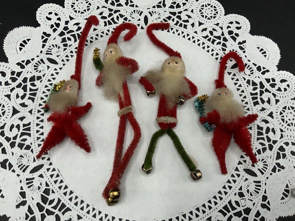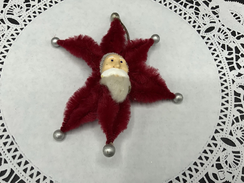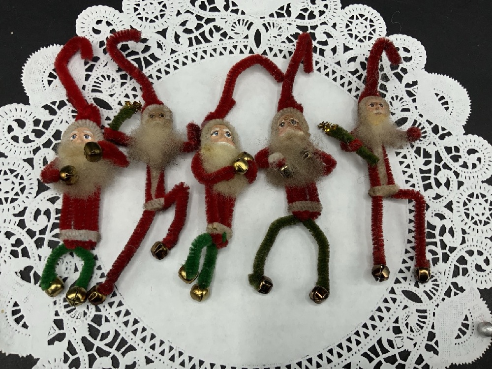 Vintage Fuzzy Wire Paper Clay Face Santa Ornaments. 13 PCs.
