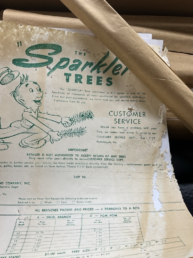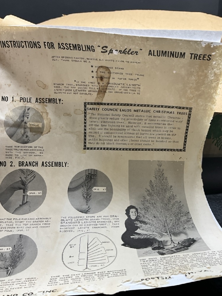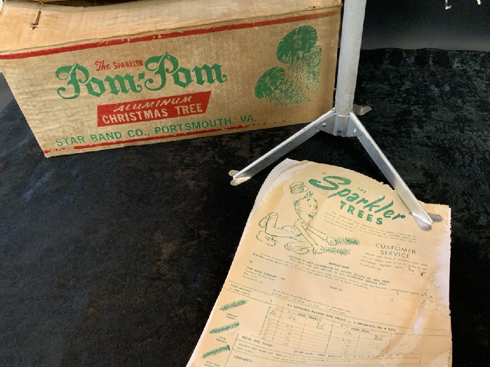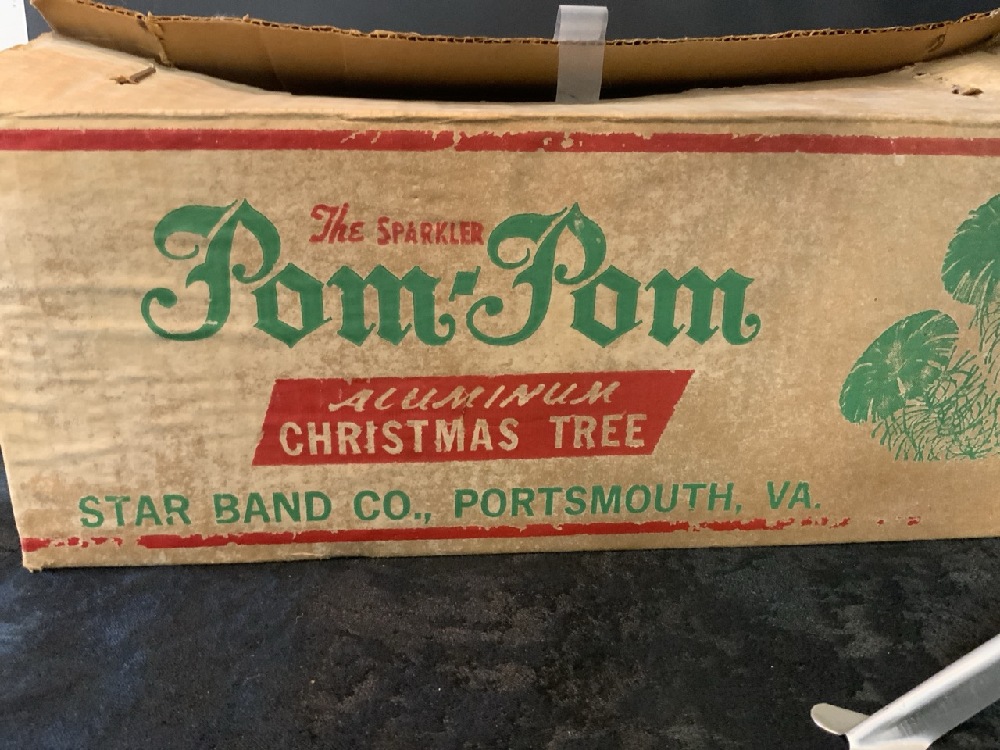 Pom Pom Sparkler Christmas Tree with Original Box. Tree set up for images. Found in box unused all in original paper sleeves.