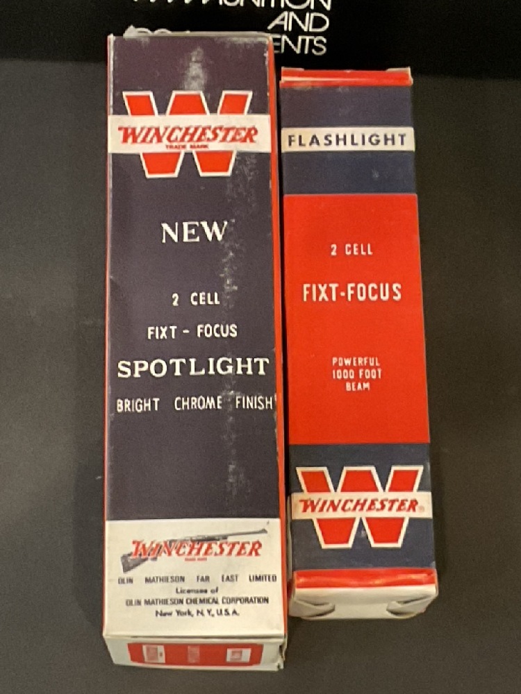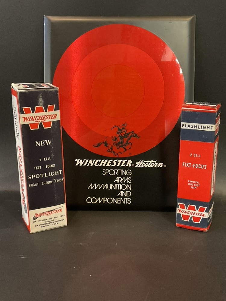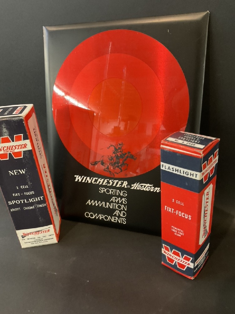 Vintage Winchester Spotlight, Flashlight & Store Ammunition Advertisement.