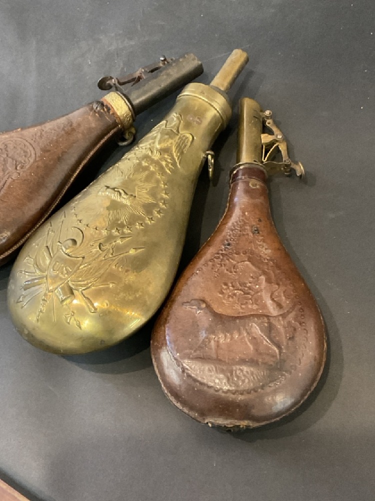 Three (3) Antique Civil War Era Powder Flasks.