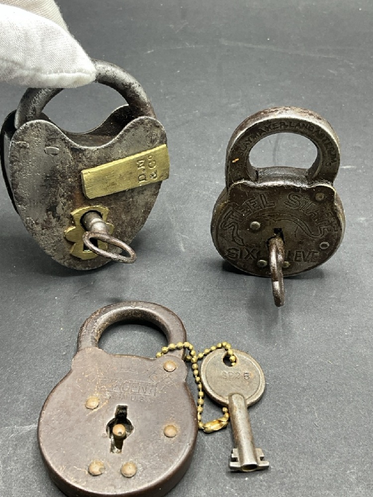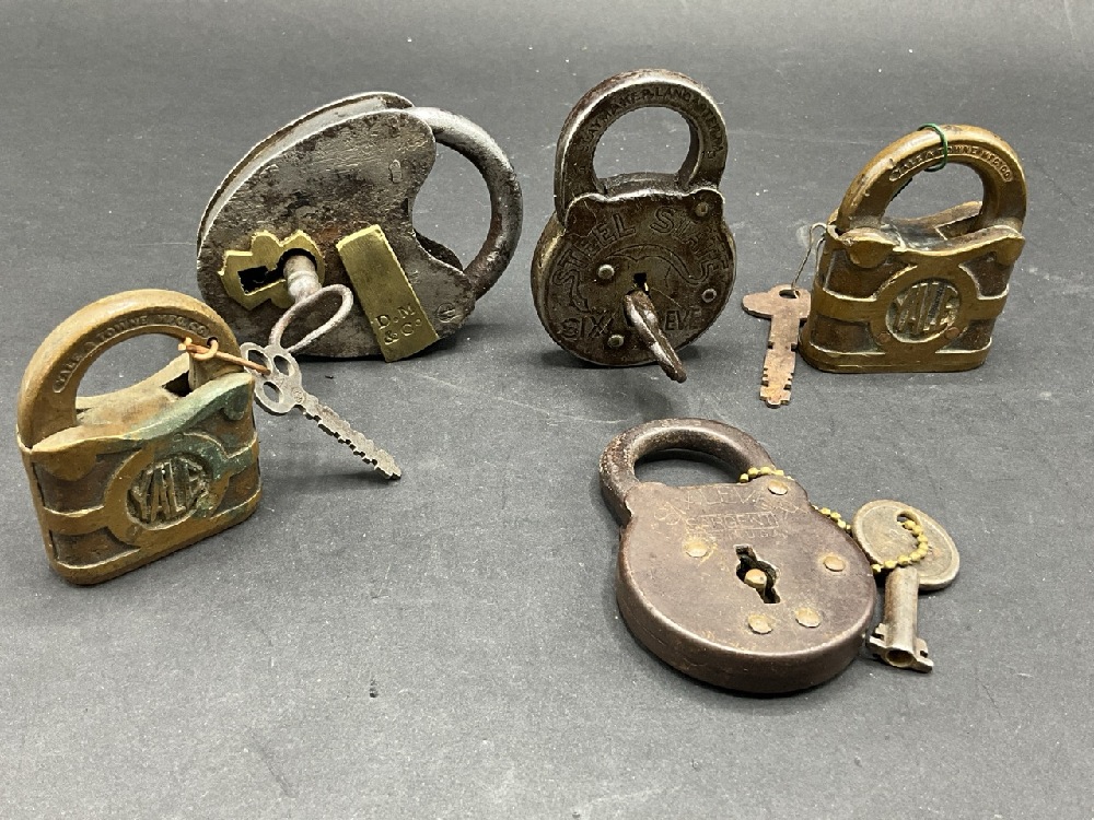 Five (5) Antique Locks with Keys . Includes: Yale, Steel State, D.N. & Co. and Sargent