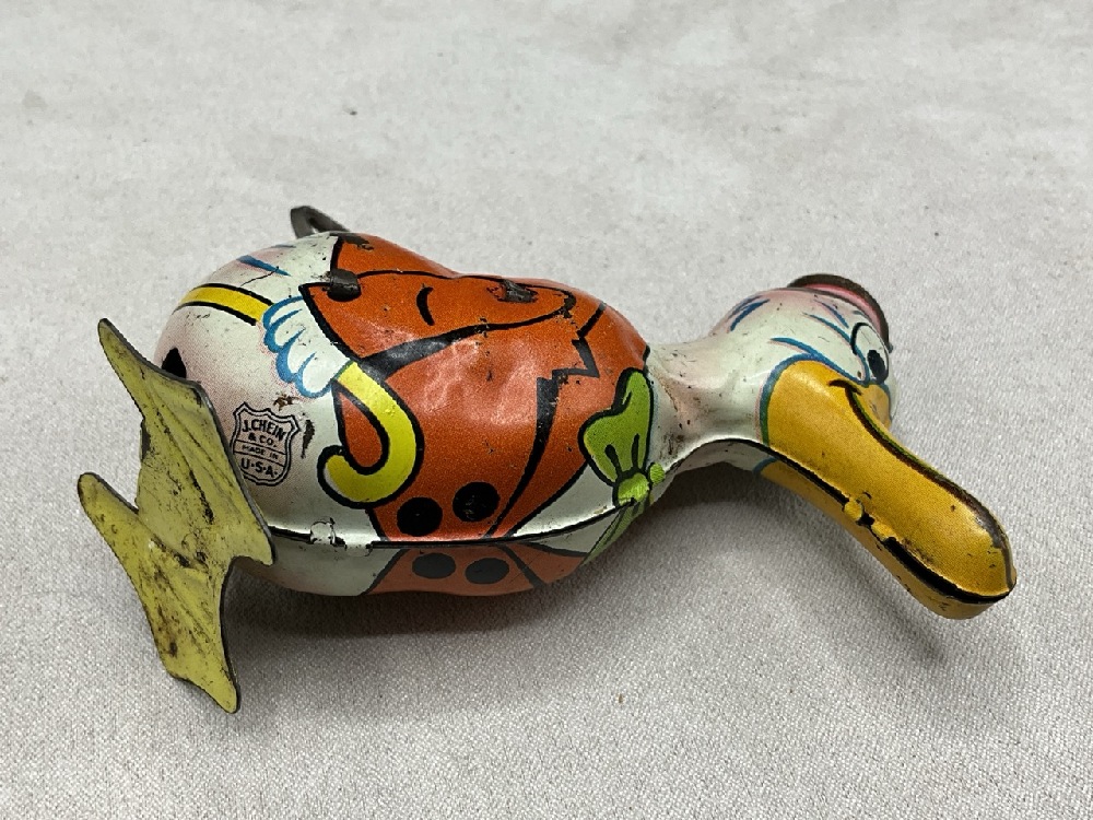 1930’s Vintage J. Chein & Co. Tin Litho Wind- Up Waddling Duck Toy
