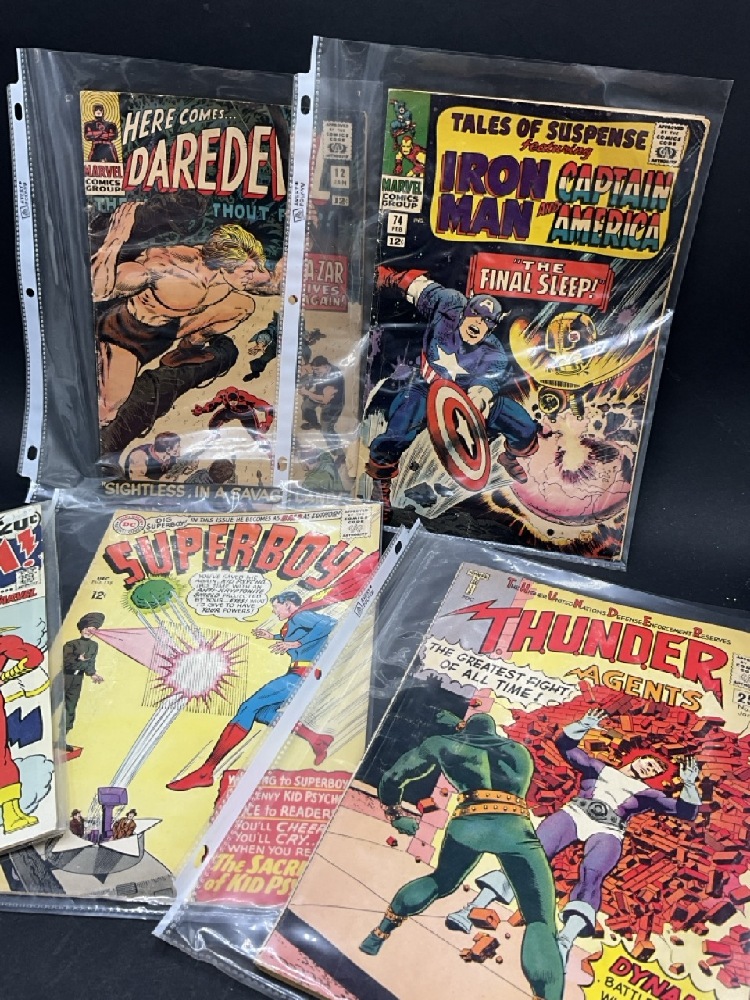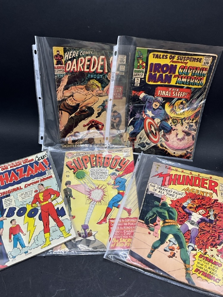 Super boy, Shazam, Thunder Agents, Iron Man/ Captain America, Daredevil