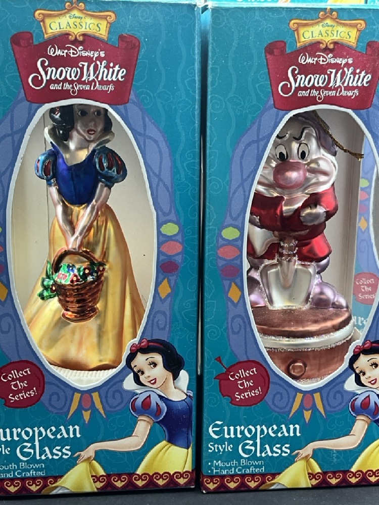 Disney Snow White & Seven Dwarfs Glass Blown Ornaments .Eight (8) Total
