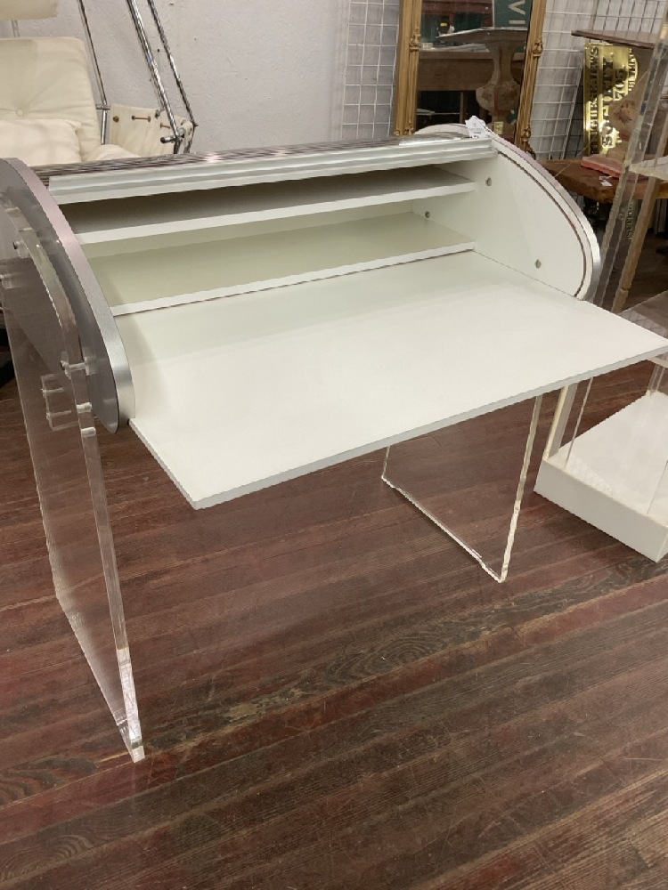 1960s Vladimir Kagan Style Lucite and Aluminum Roll Top Desk