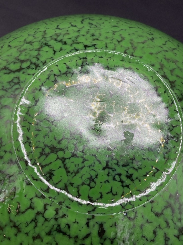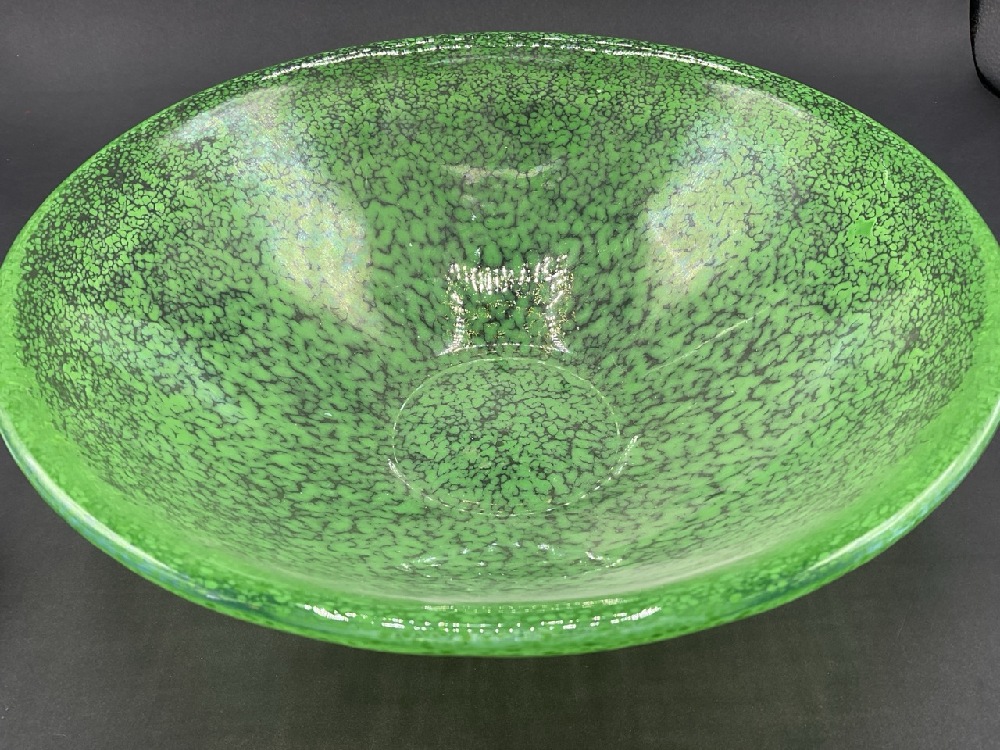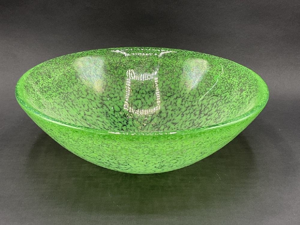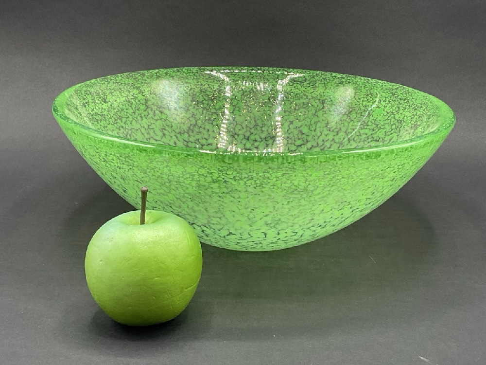 Kosta Boda Anna Elmer Green Speckled Tellus Art Glass Bowl w/ Label.