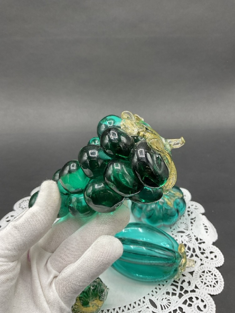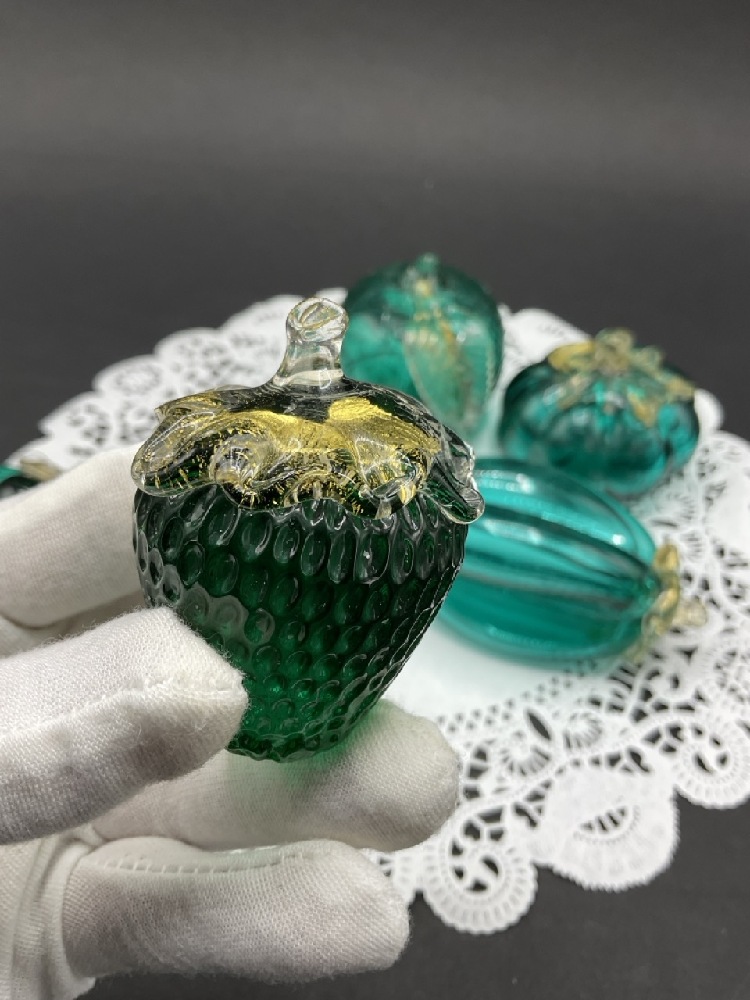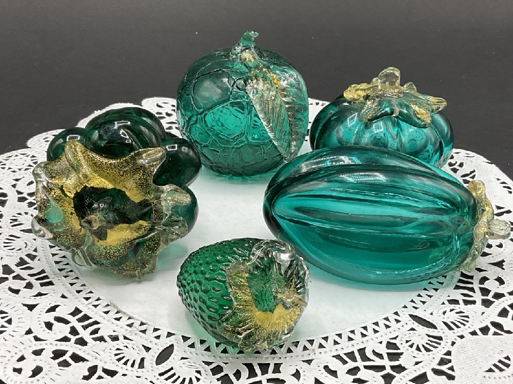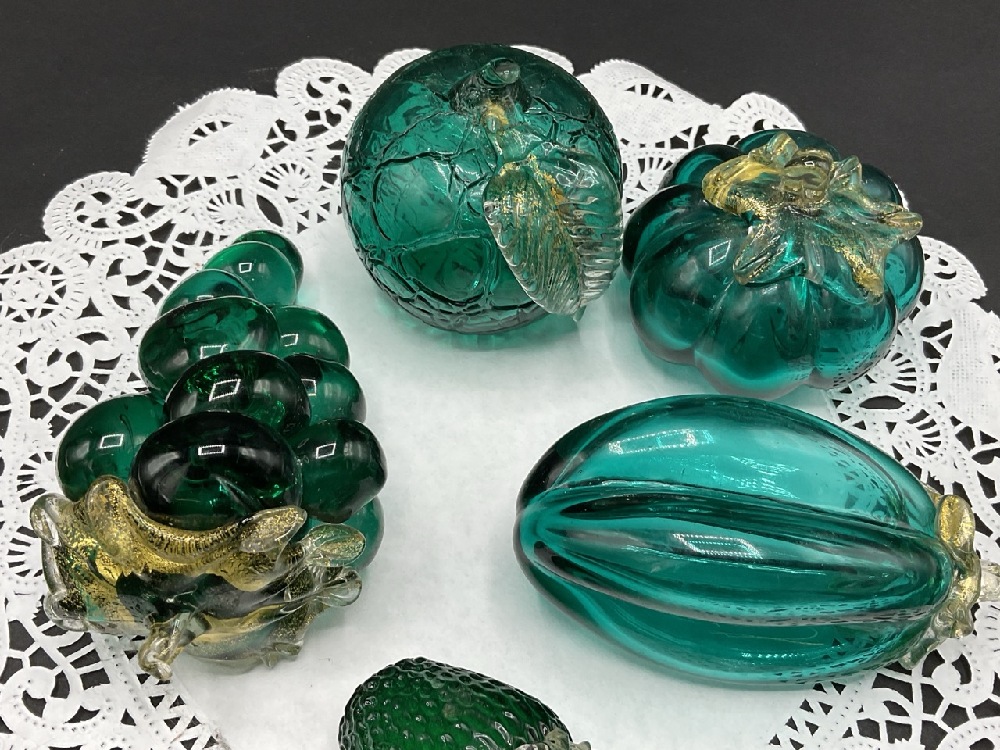 Murano Green Glass Fruits w/ Gold Fleck.