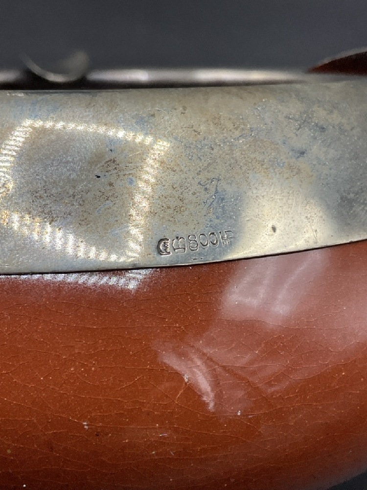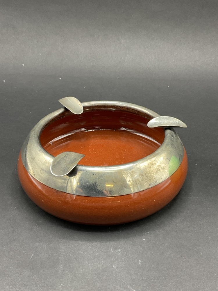Early 1900's German, Cadinen 800 Silver and Ceramic Ashtray. c.1915.