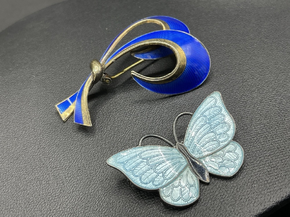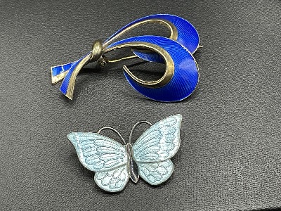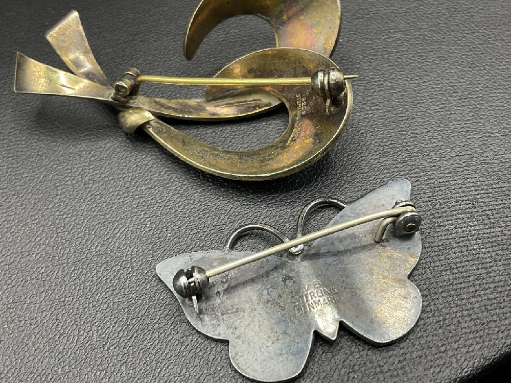 VB Sterling Silver Denmark Norway Butterfly Pin and Ribbon Pin.