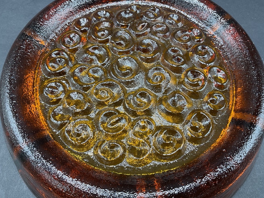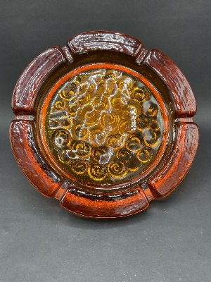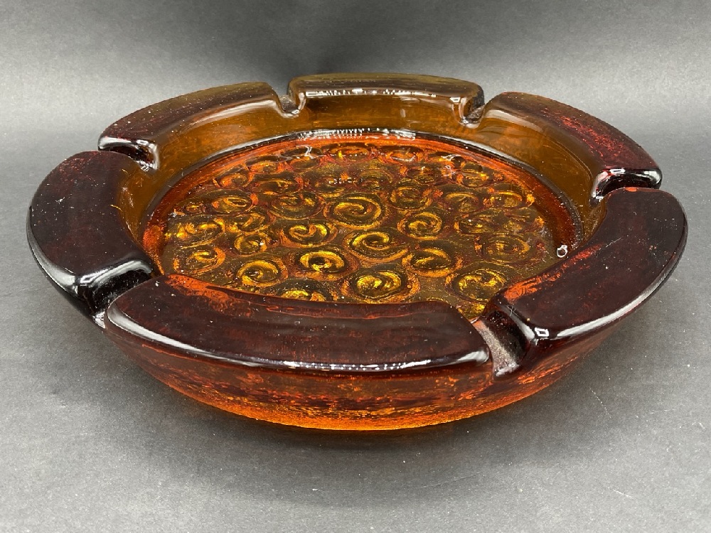 Vintage Orange Sunfire Swirl Blenko Glass Ashtray.