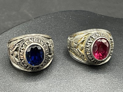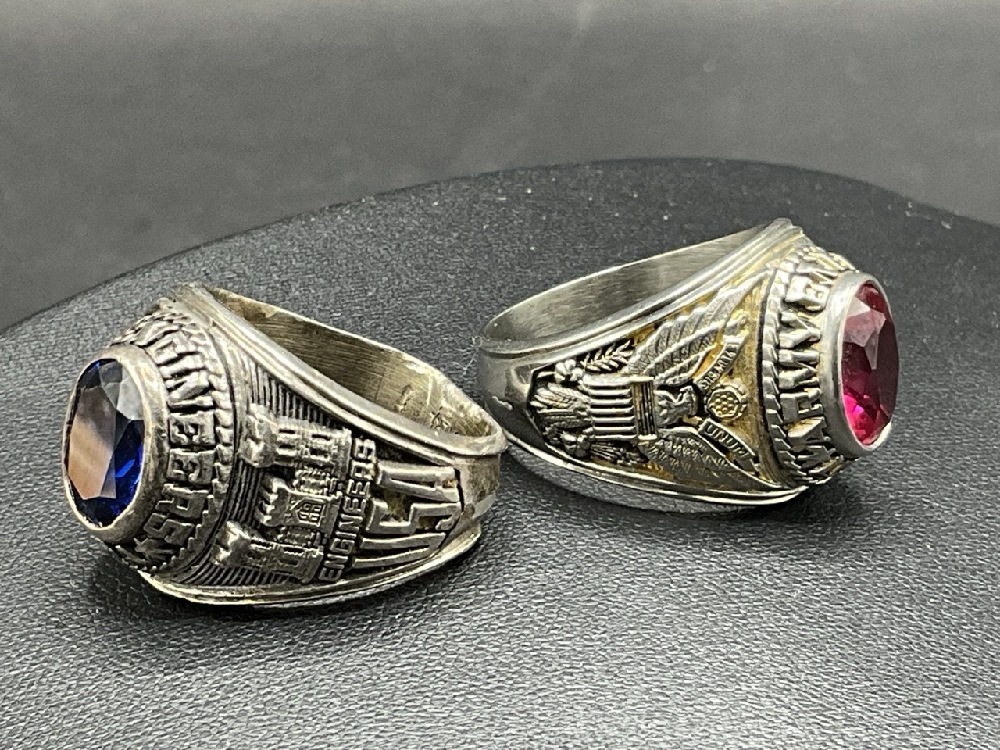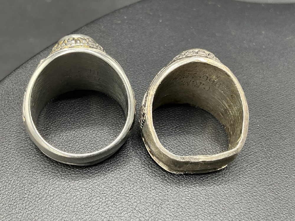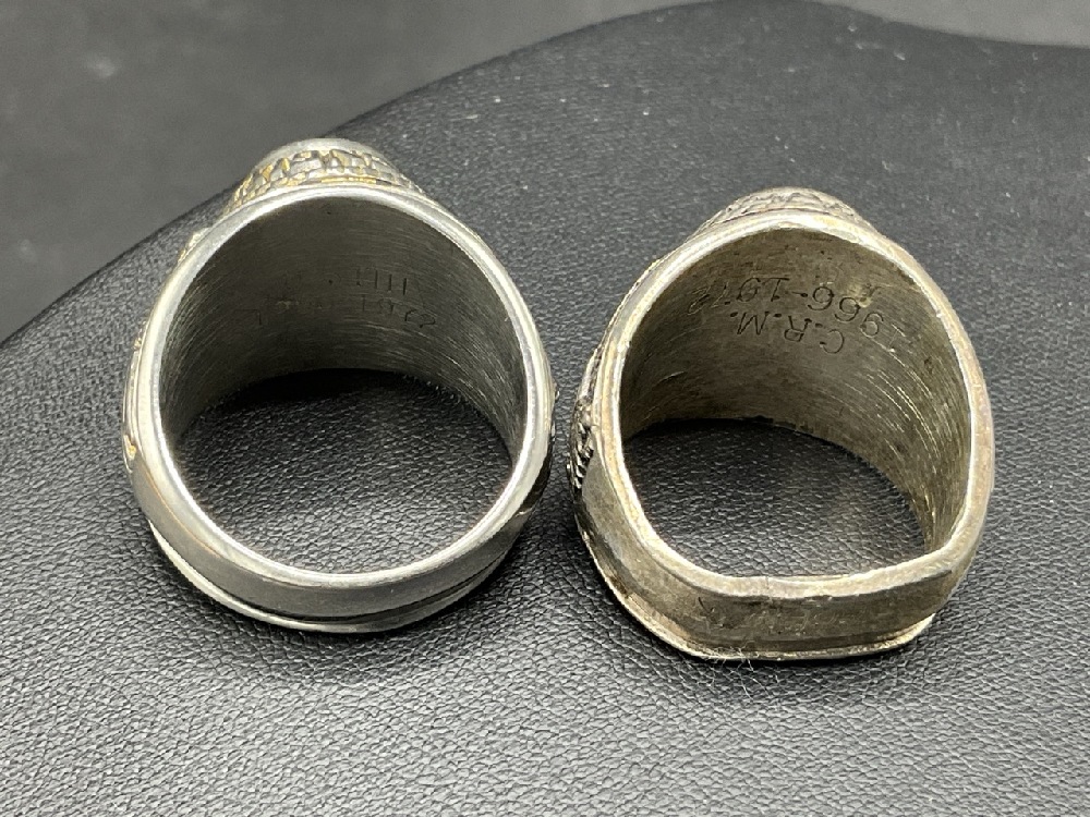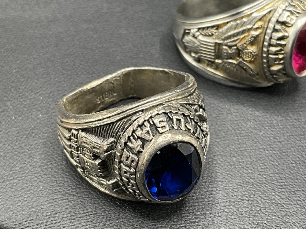 Two (2) Men's Vintage U.S. Military Army Rings with stones. Sterling silver.