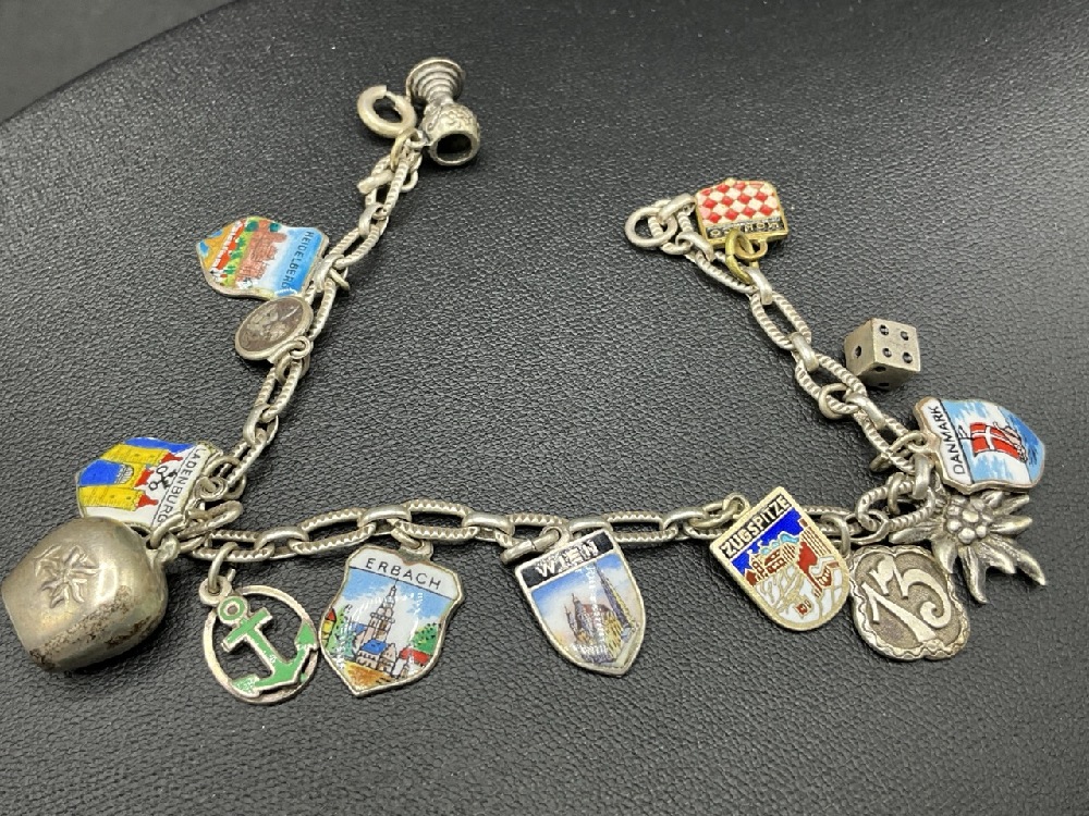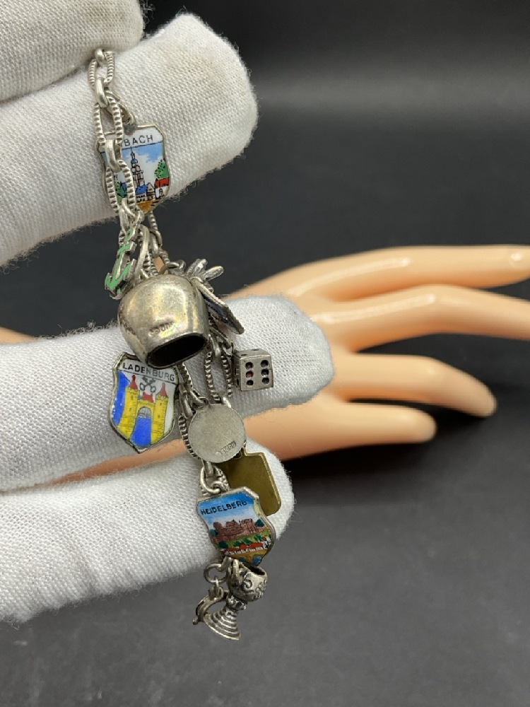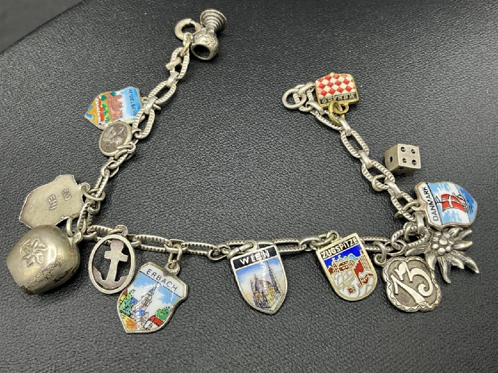 8" Sterling Silver Charm Bracelet. Scandinavian 800-835 silver.