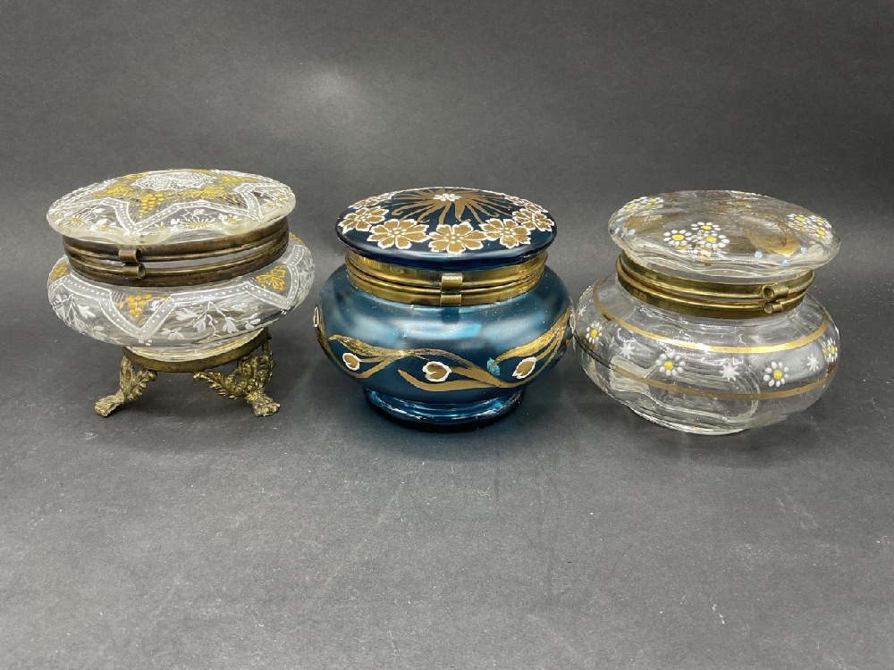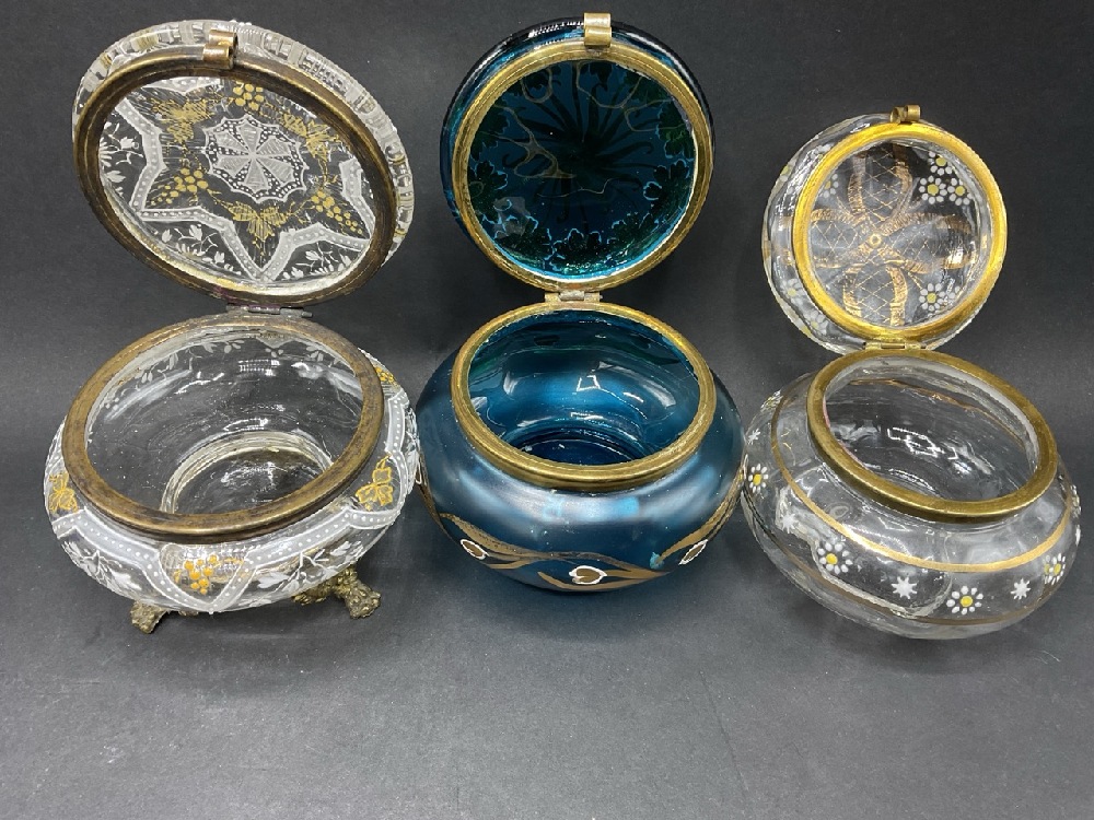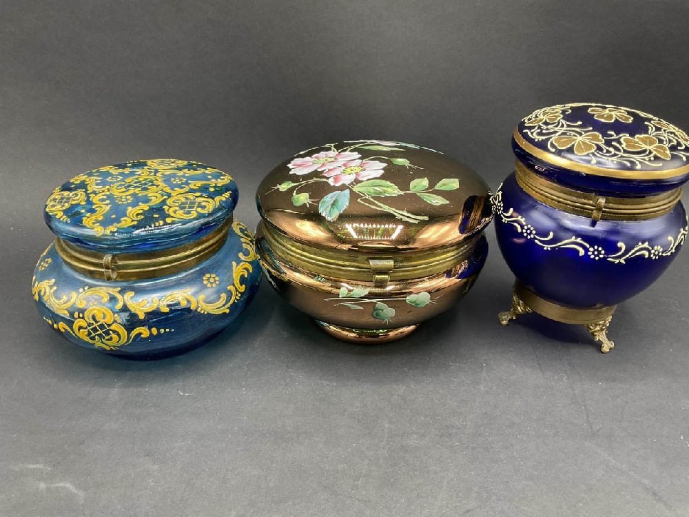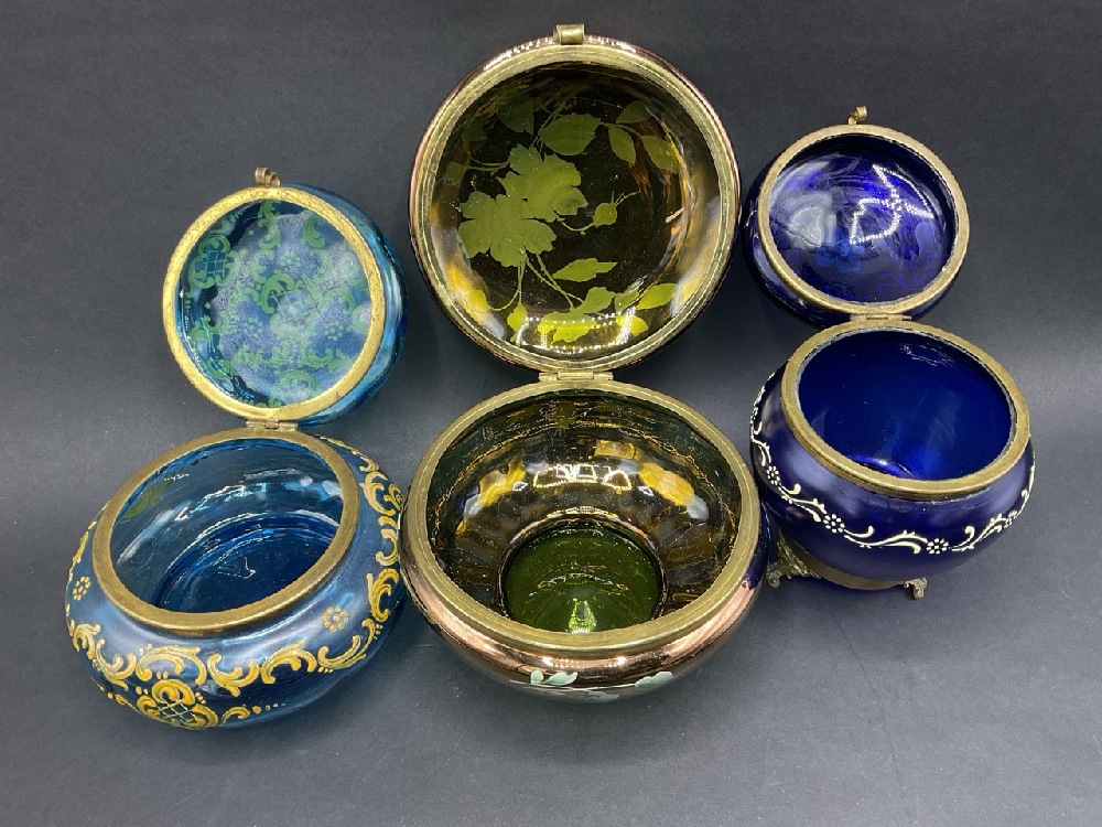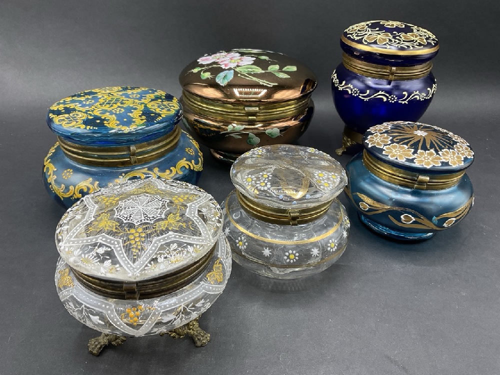 (6) Vintage Art Glass Hand Painted Trinket Boxes.