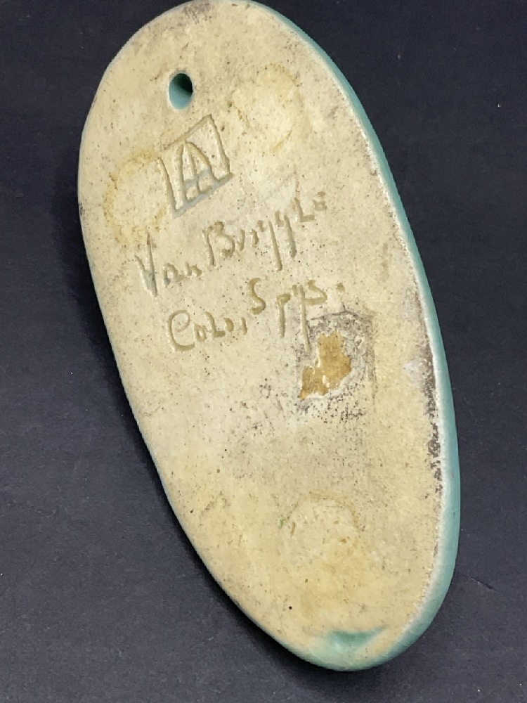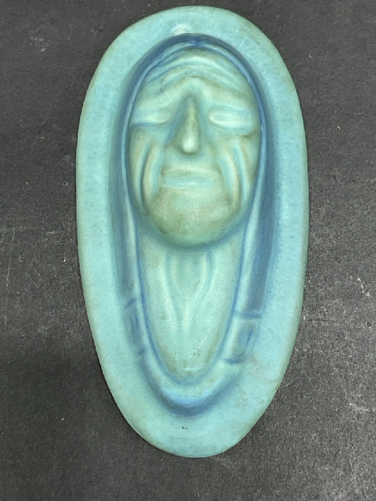 Vintage Van Briggle Blue Pottery Native American Portrait Plaque.