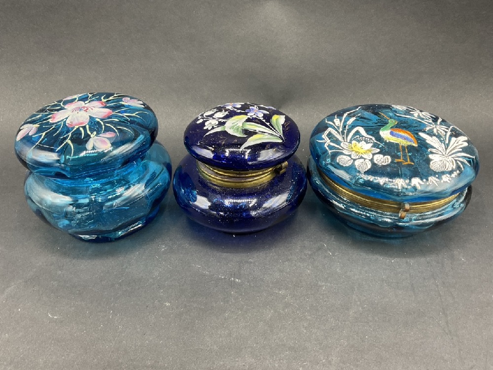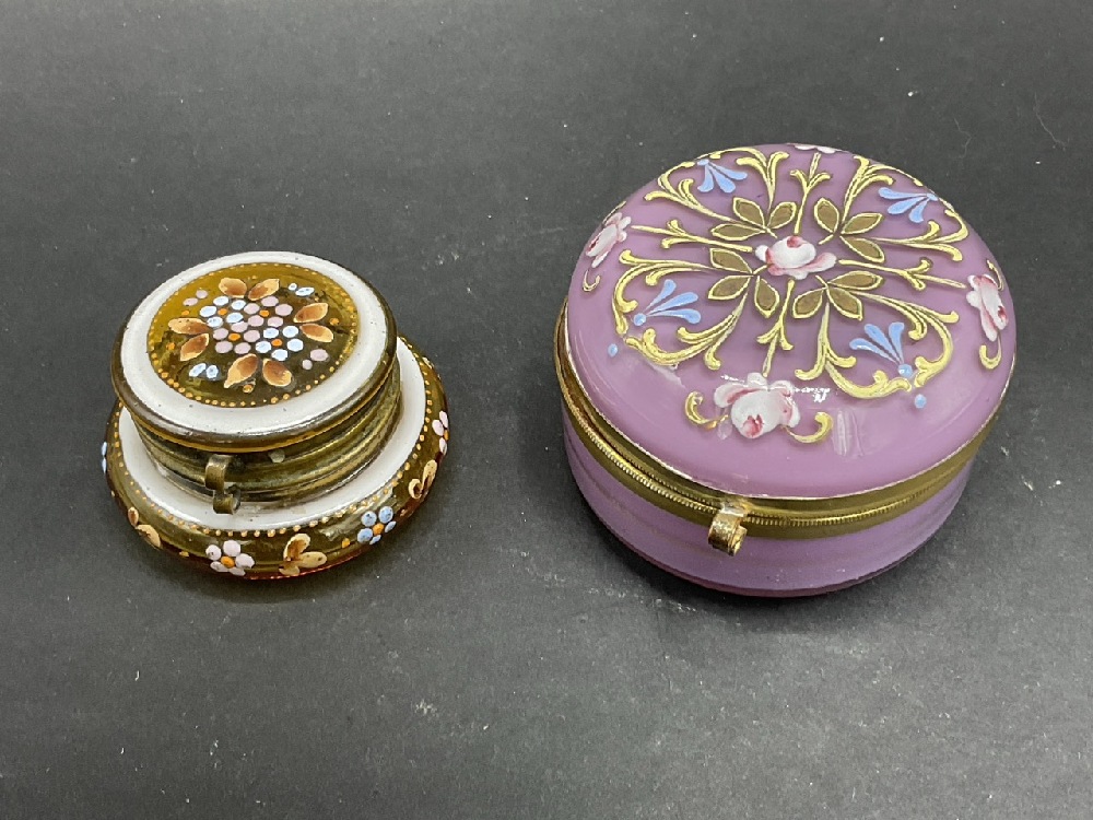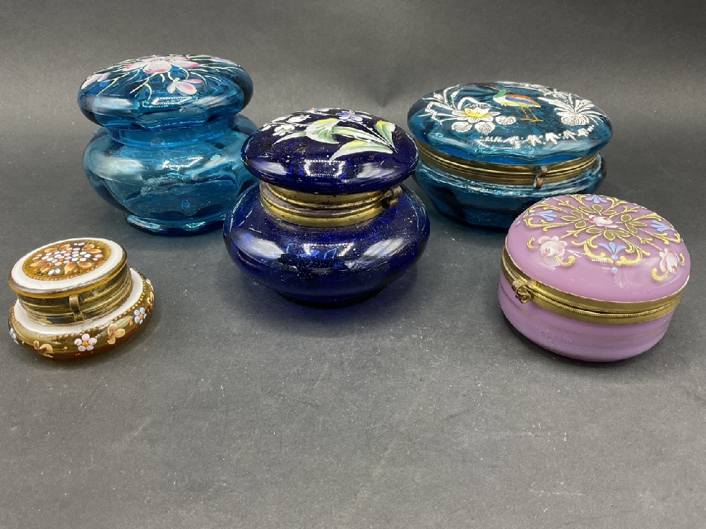 (6) Vintage Art Glass Hand Painted Trinket Boxes.