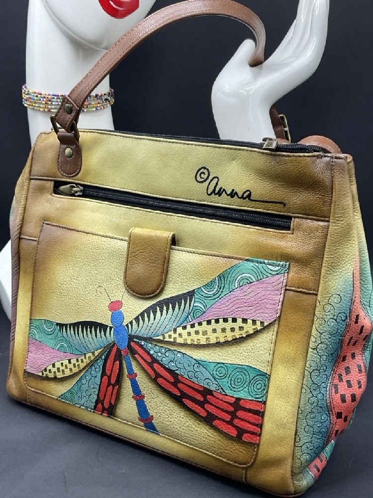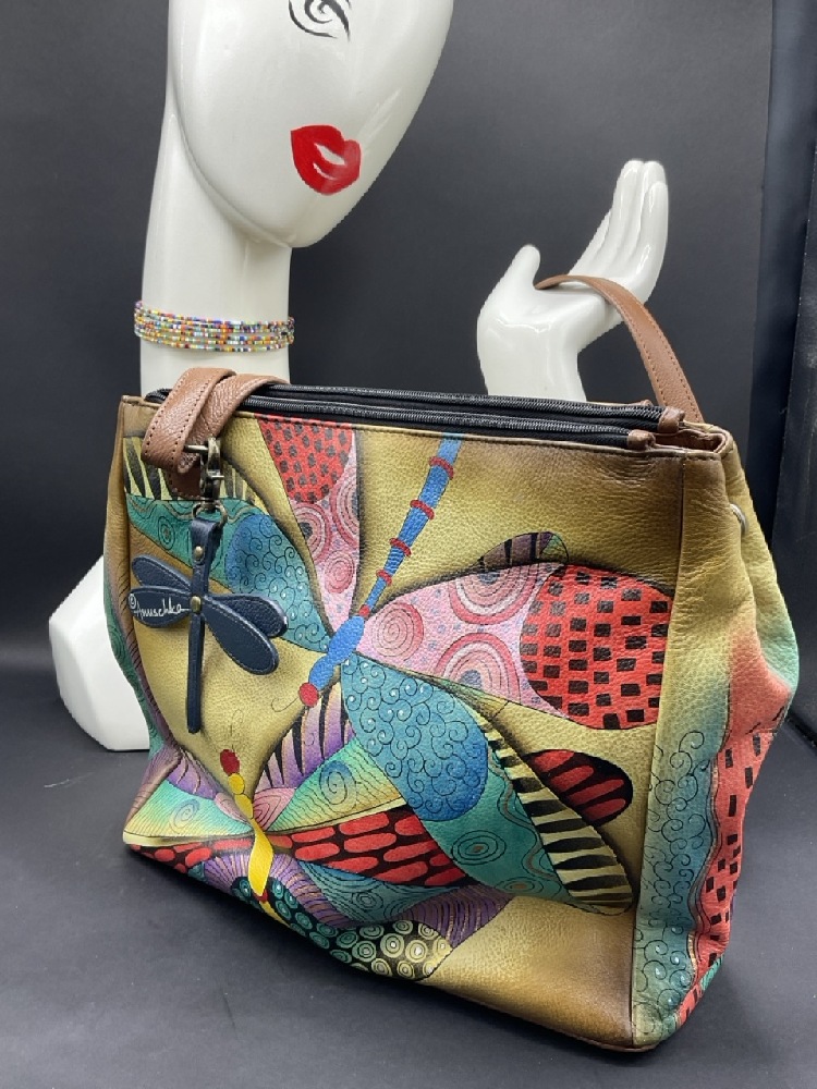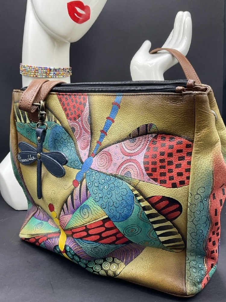 Anna by Annuschka "Dragonfly" Hand Painted Leather Handbag.