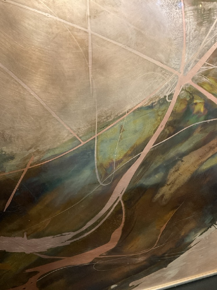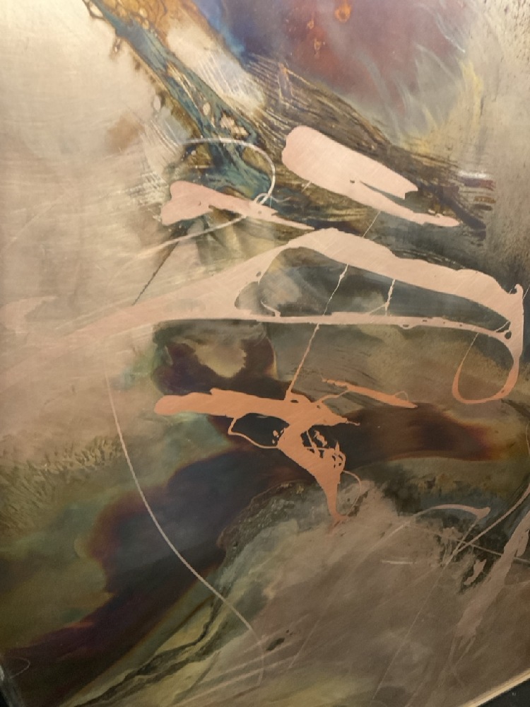 John West (American 20th Century) Abstract Original Metal Art.Sheet metal with copper coloring. Signed John West. Two pieces consecutively numbered G1 and G2. Dimensions: 24 1/2” x 36 1/2”