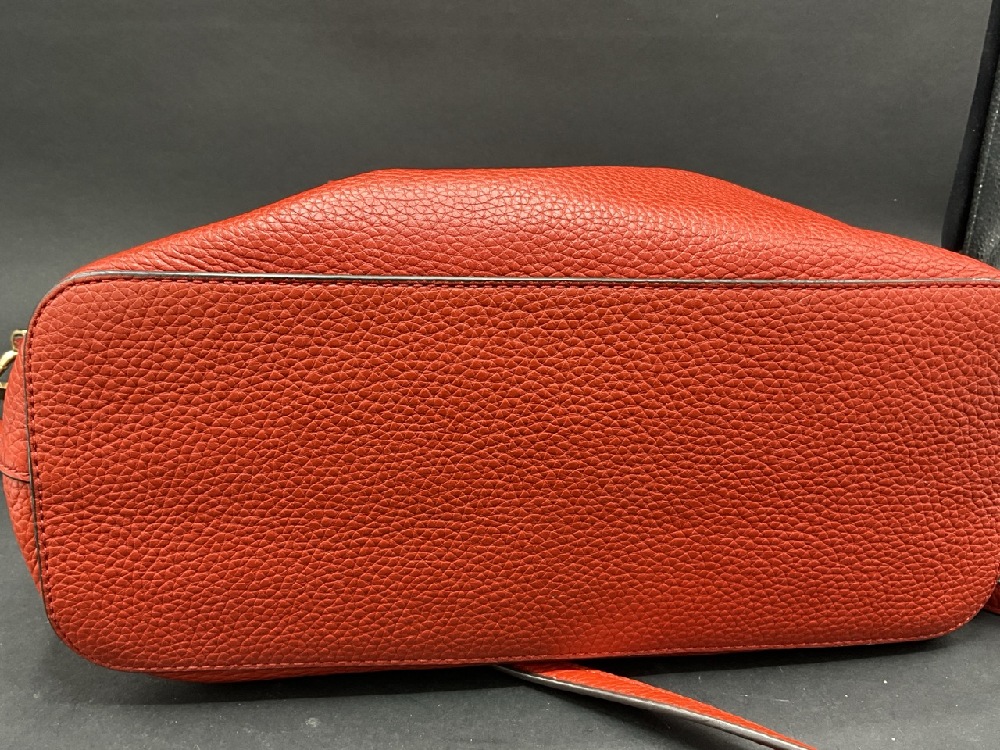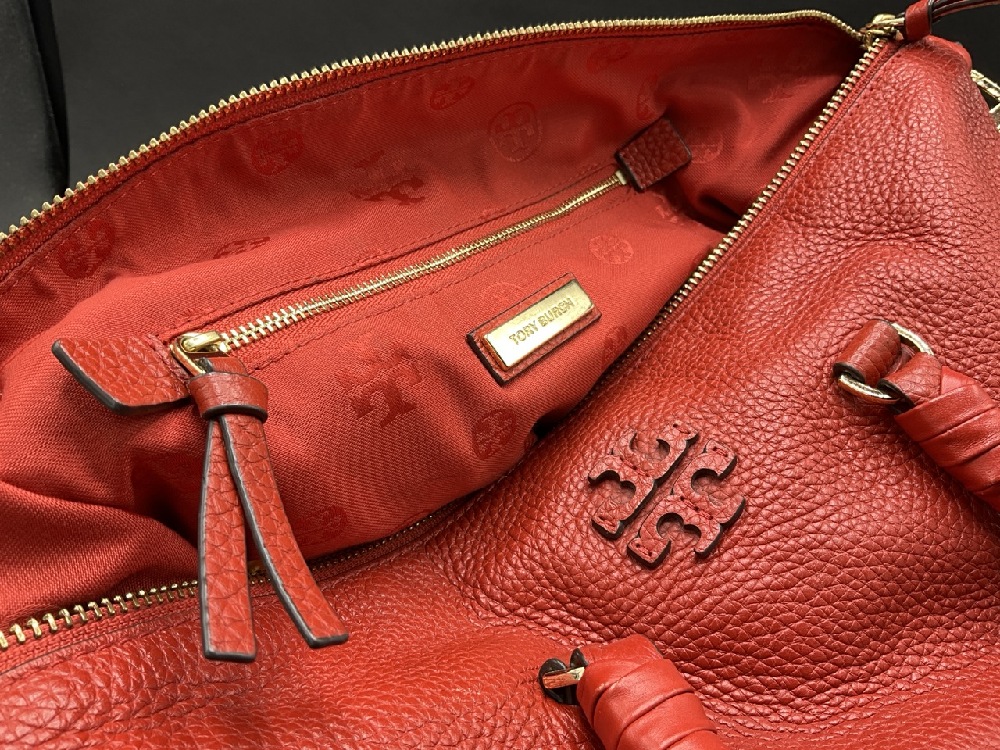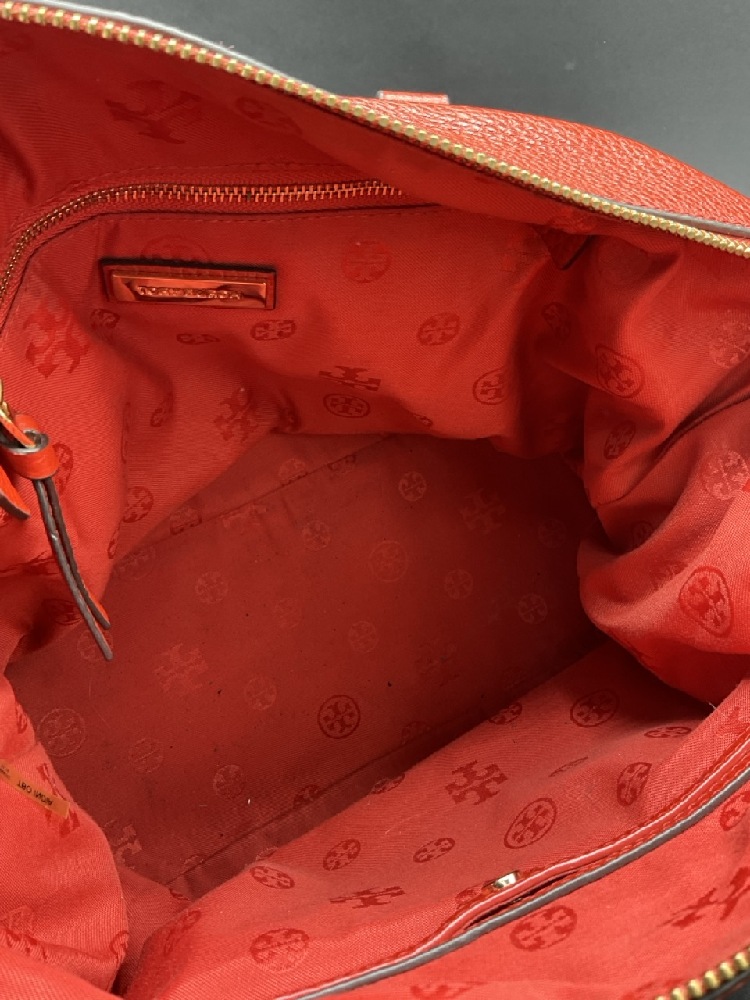 Red Tory Burch Leather Handbag. Braided leather handles and adjustable/removable shoulder strap. Lightly used. Please see photograph preview.