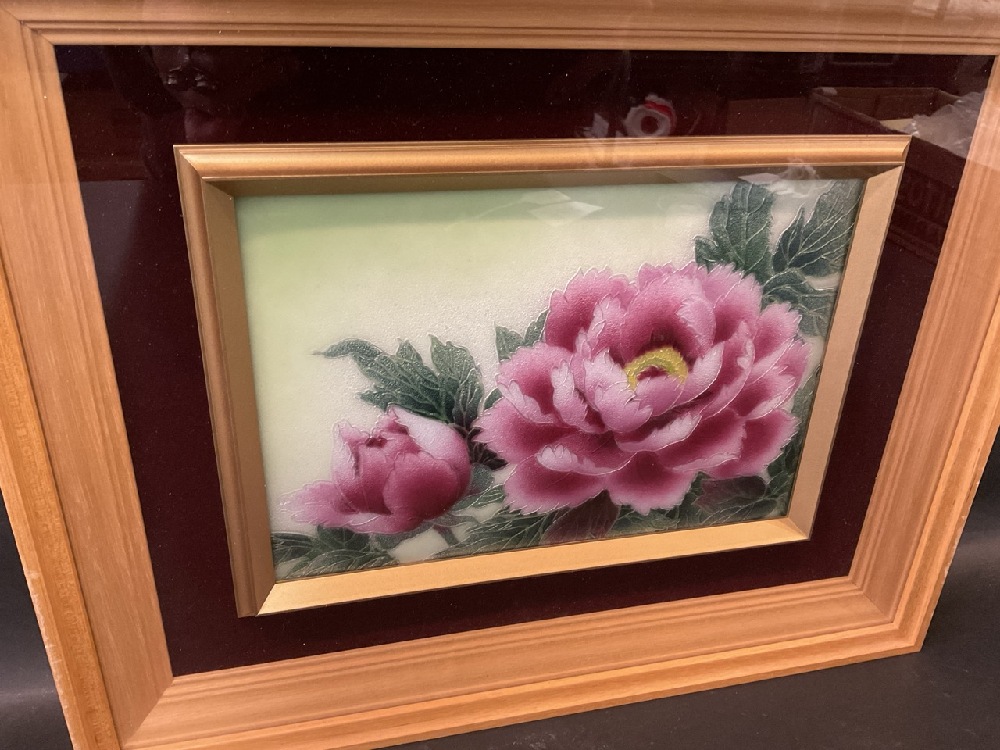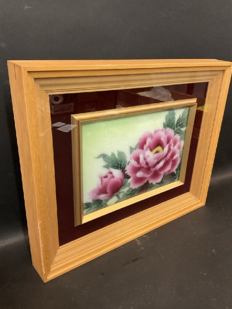 Vintage Japanese Cloisonné Enamel Framed Plaque of Peony.