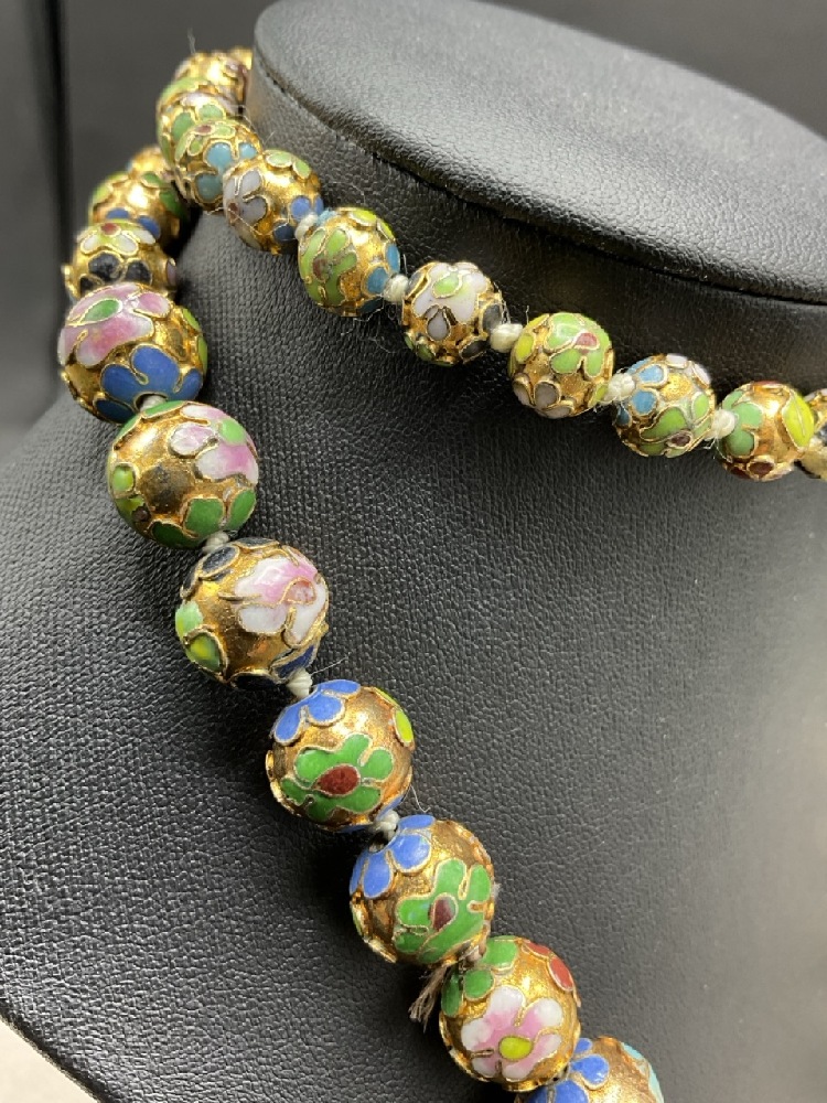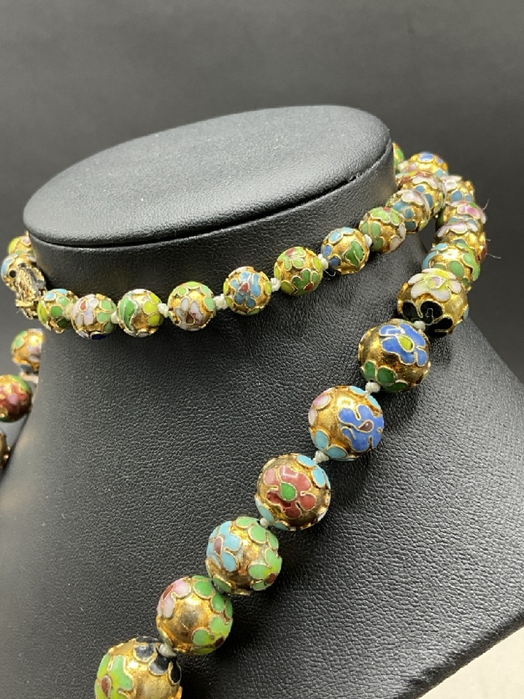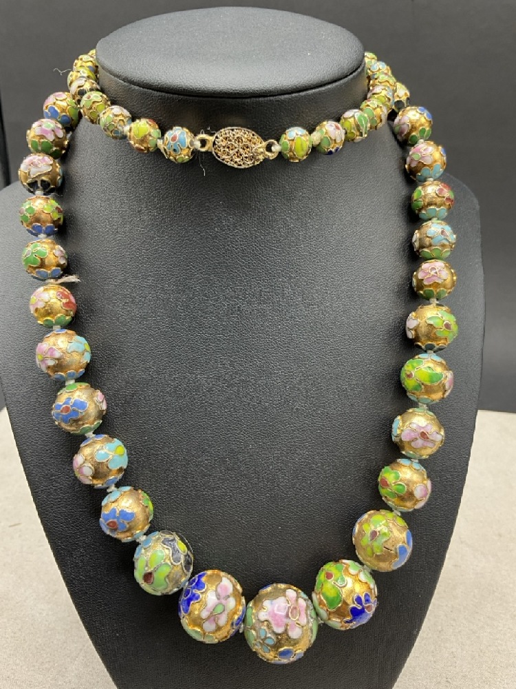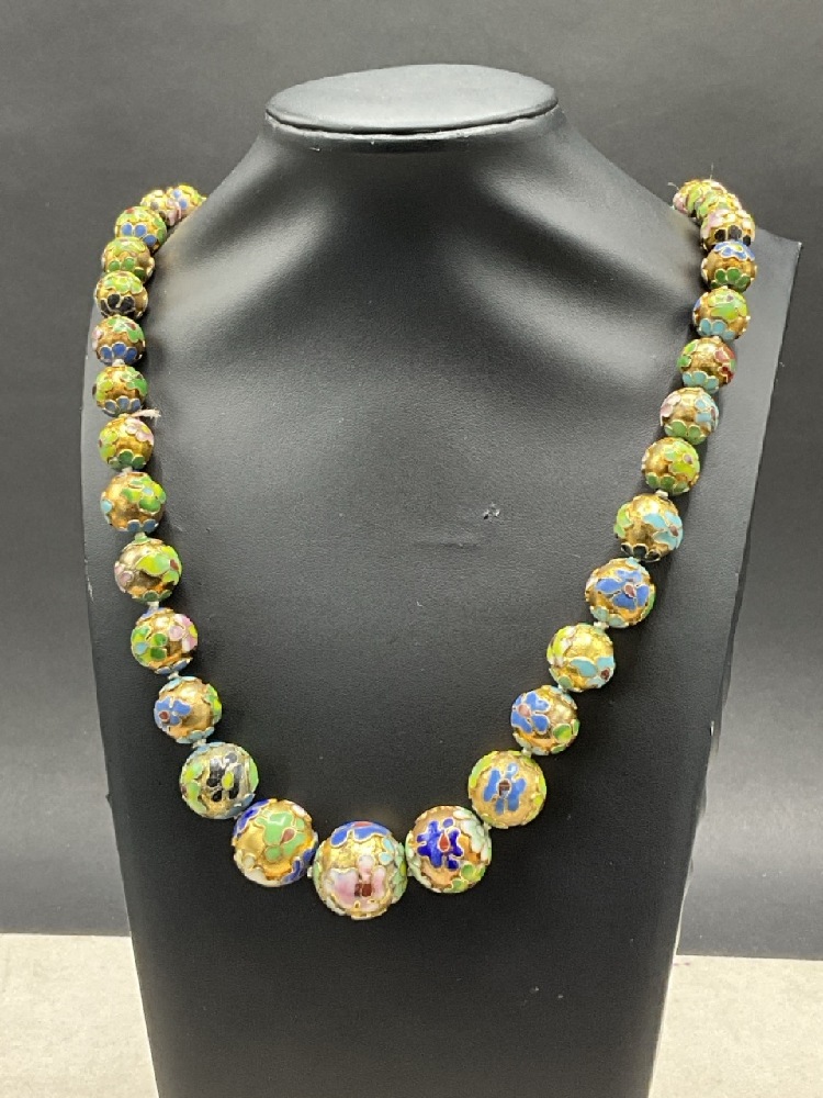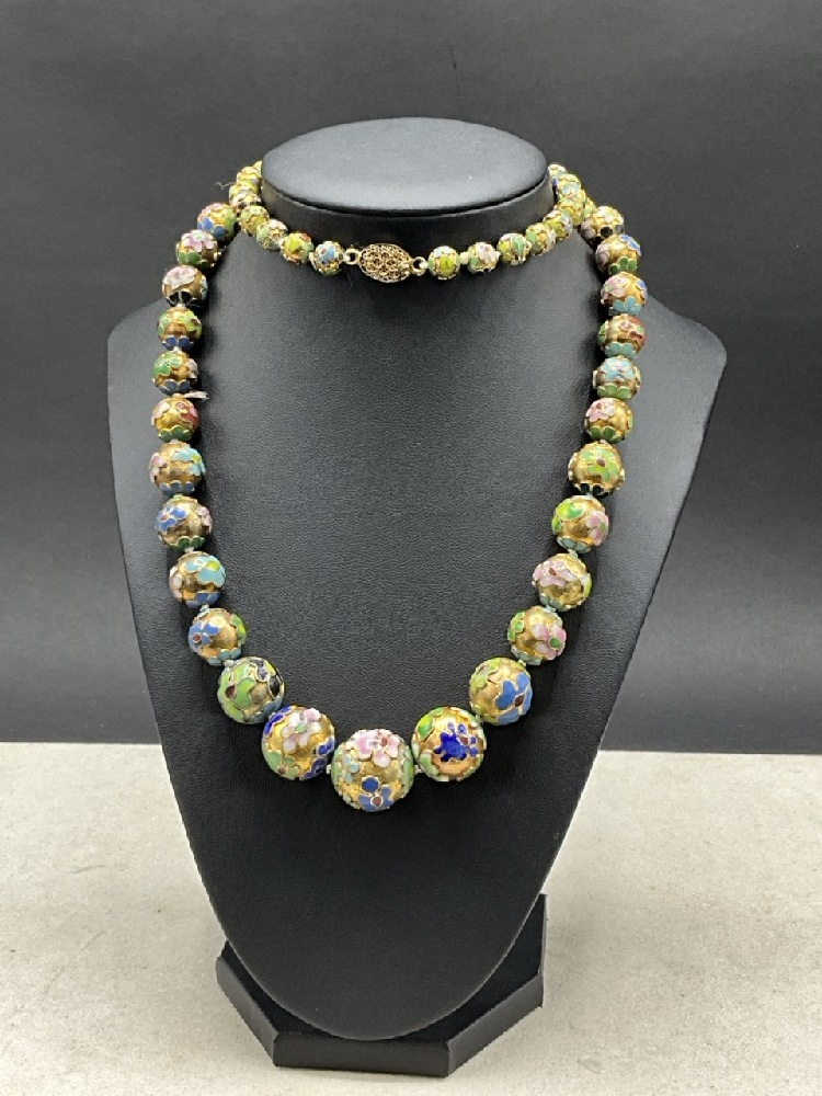 Vintage Chinese Cloisonné Enameled Graduated Beaded Necklace.