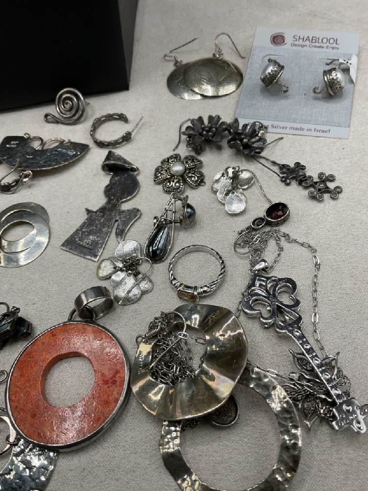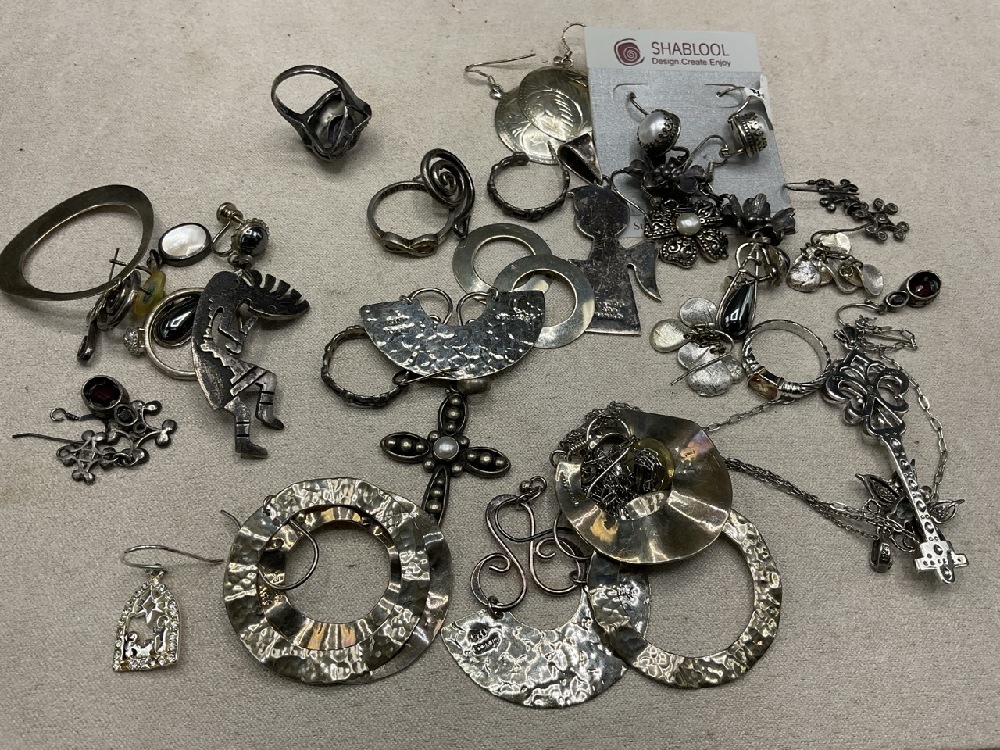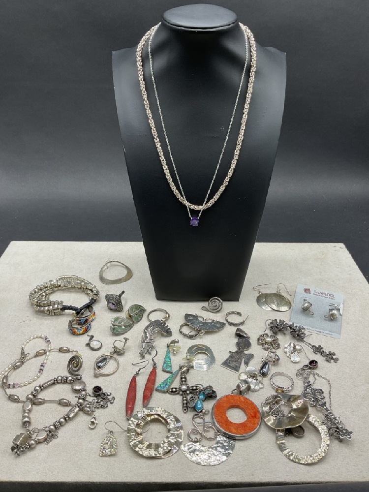 Large Grouping of Vintage Sterling Silver Jewelry As seen in photograph preview.